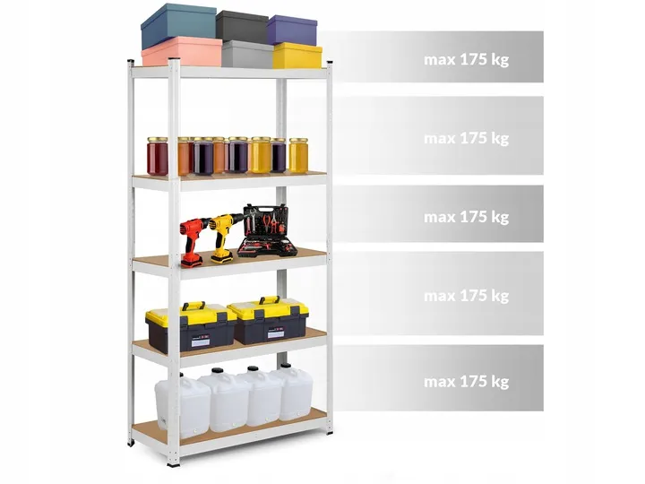 Regał składa się z 5 półek, a jego maksymalne obciążenie to aż 875 kg!