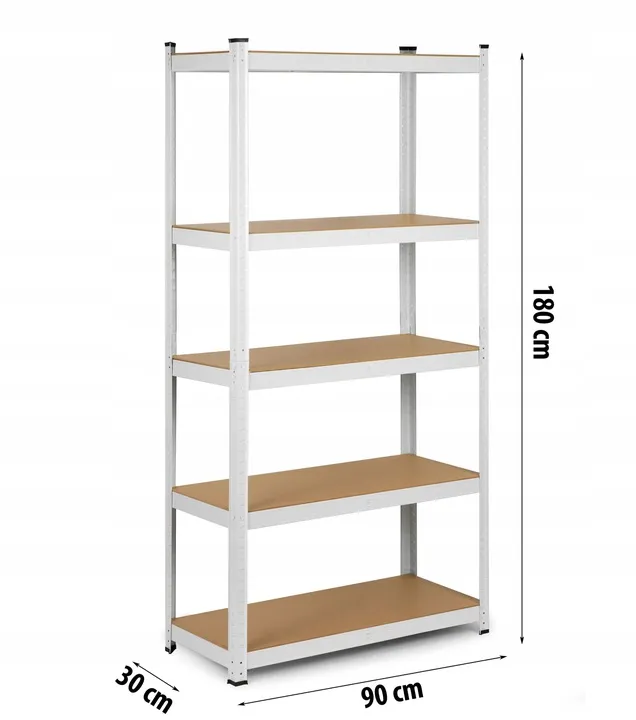 Funkcjonalny i stabilny regał magazynowy w kolorze białym, który znakomicie sprawdzi się w: