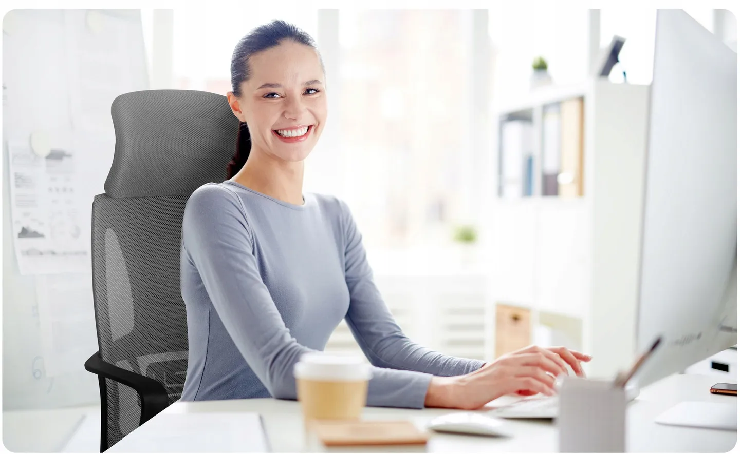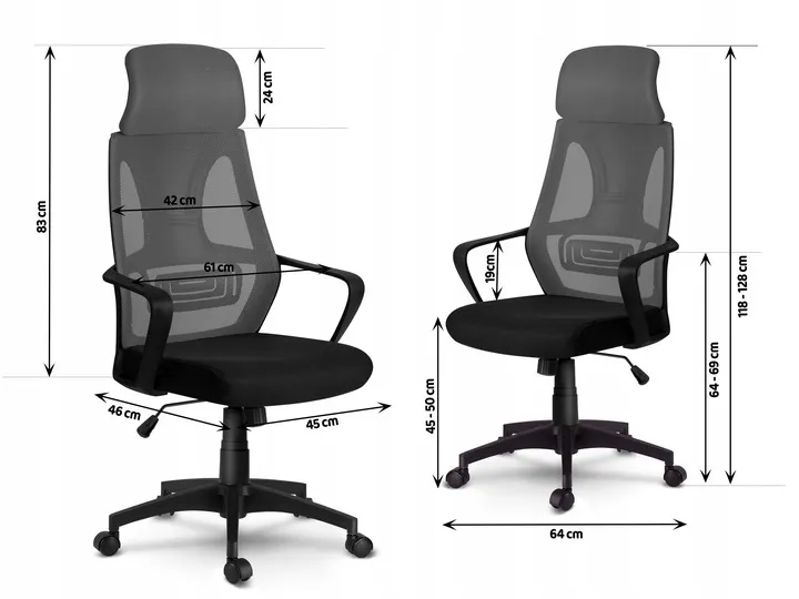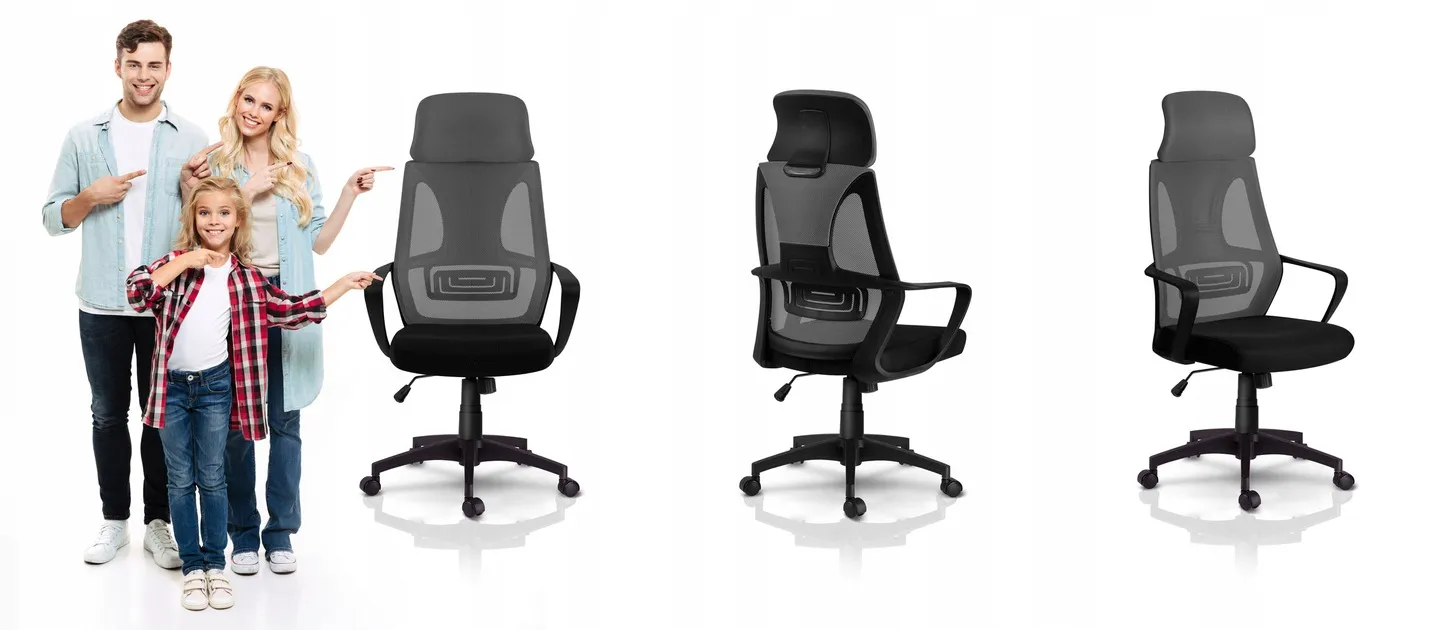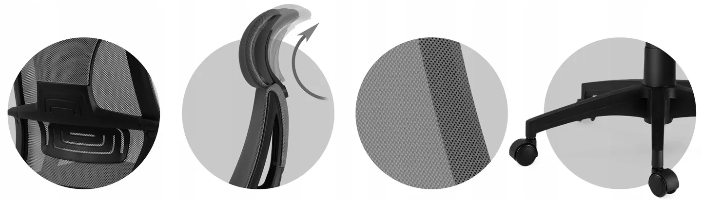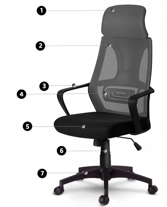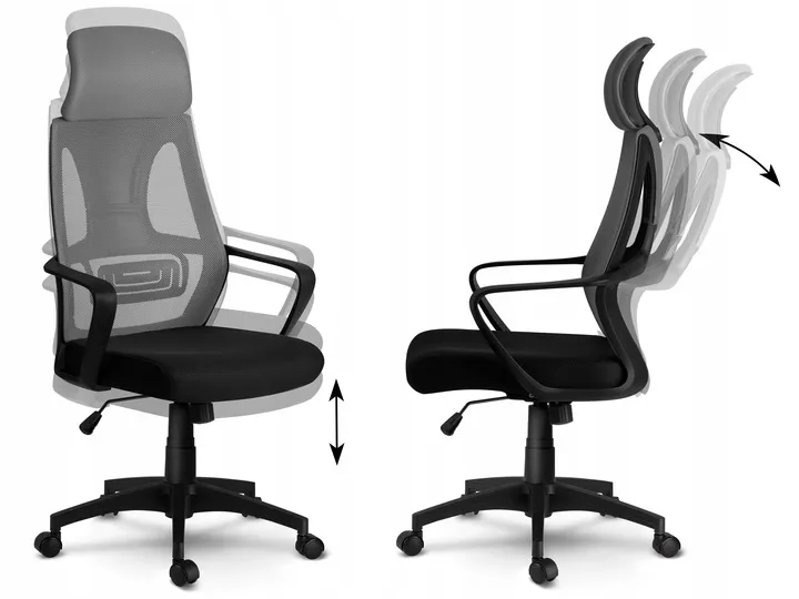 2. profilowane, wysokie oparcie wykonane ze przewiewnej mikrosiatki