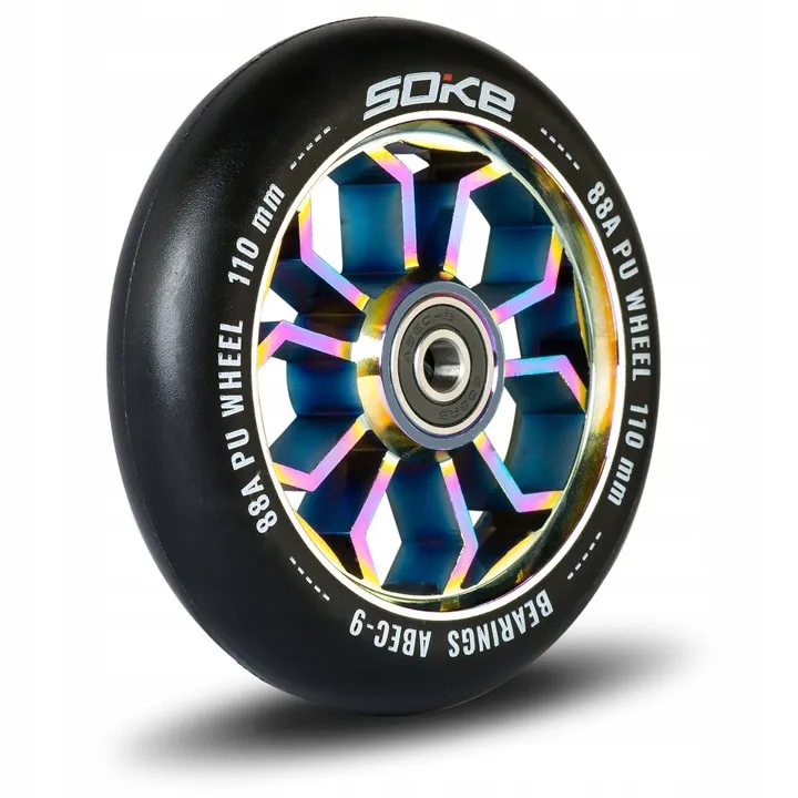 Koła marki SOKE są wykonane z mieszanki poliuretanu o twardości 88A oraz posiadają jedne z najszybszych łożysk: ABEC 9. Doskonale  sprawdzą się na twardych nawierzchniach jak np. asfalt.