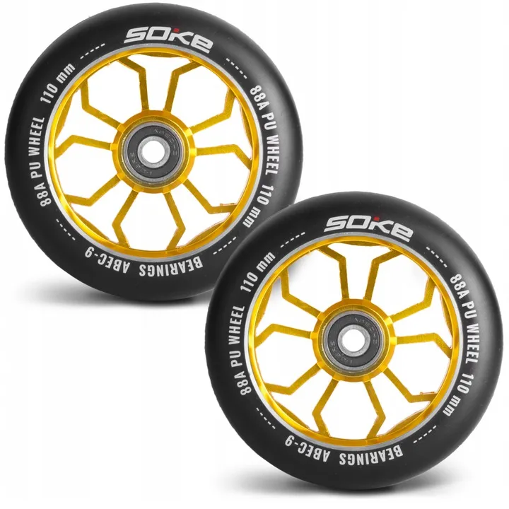 Koła marki SOKE są wykonane z mieszanki poliuretanu o twardości 88A oraz posiadają jedne z najszybszych łożysk: ABEC 9. Doskonale sprawdzą się na twardych nawierzchniach jak np. asfalt.