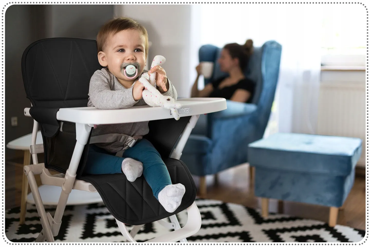 Pikowany materiał sprawi, że maluch poczuje się w krzesełku wygodnie i spokojnie.