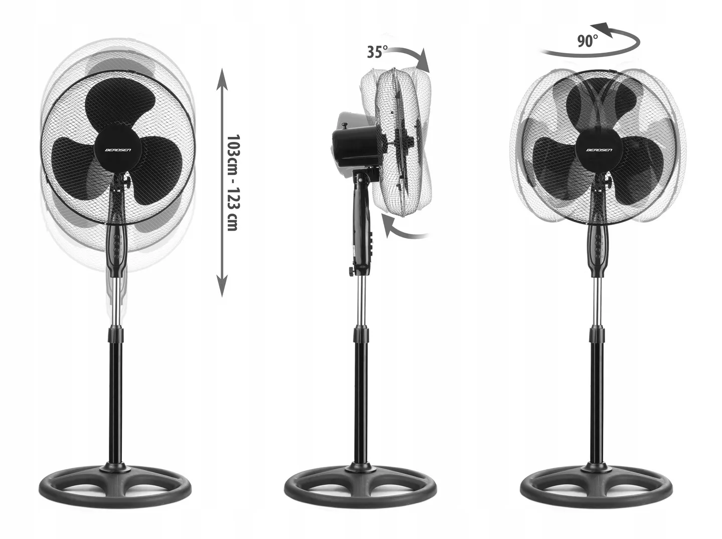 Wentylator Berdsen to idealny wybór- przyniesie ulgę w upalne dni, a dzięki regulacji stopnia nawiewu, regulacji wysokości, i oscylacji dostosujesz go do swoich potrzeb.