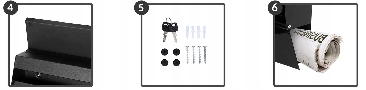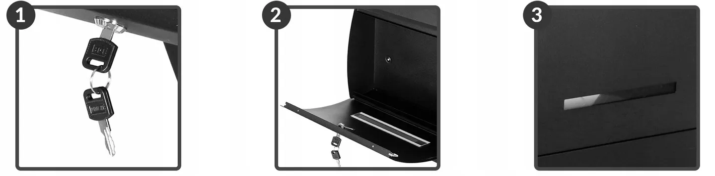 Wraz ze skrzynką kupujesz kompletny zestaw montażowy i drugi kluczyk.