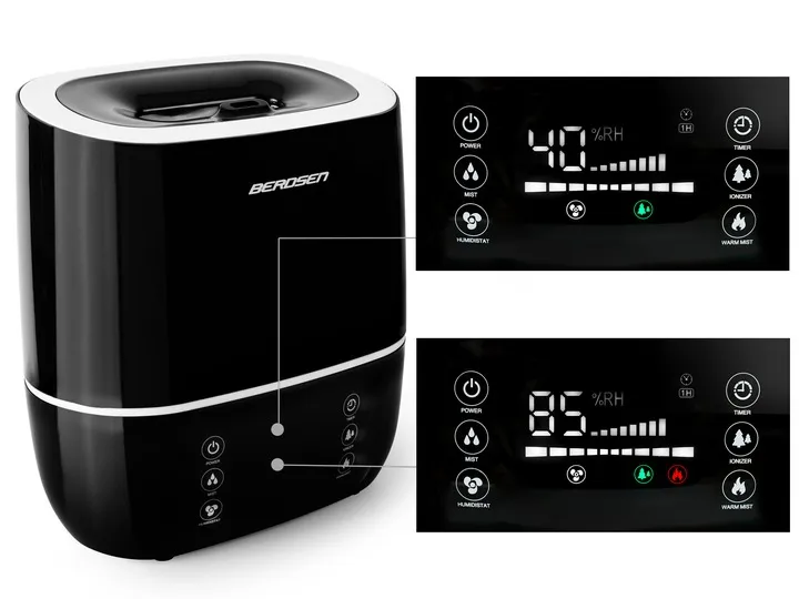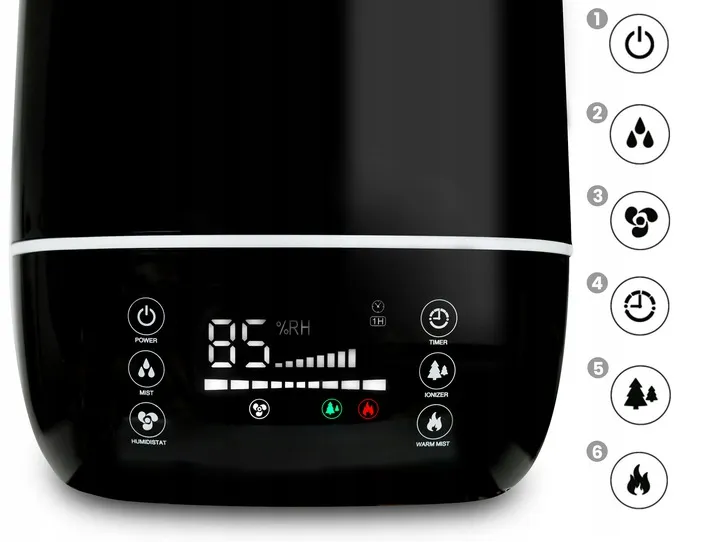 Możesz ustawić wilgotność, jaką chcesz uzyskać, w zakresie aż od 40% do 85%. Nawilżacz będzie wykonywał swoją pracę tak długo, aż w otoczeniu zapanuje zadany poziom wilgotności.