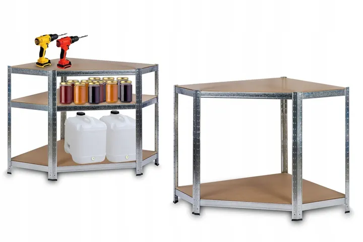 Funkcjonalny i stabilny regał magazynowy w kolorze srebrnym, który znakomicie sprawdzi się w: