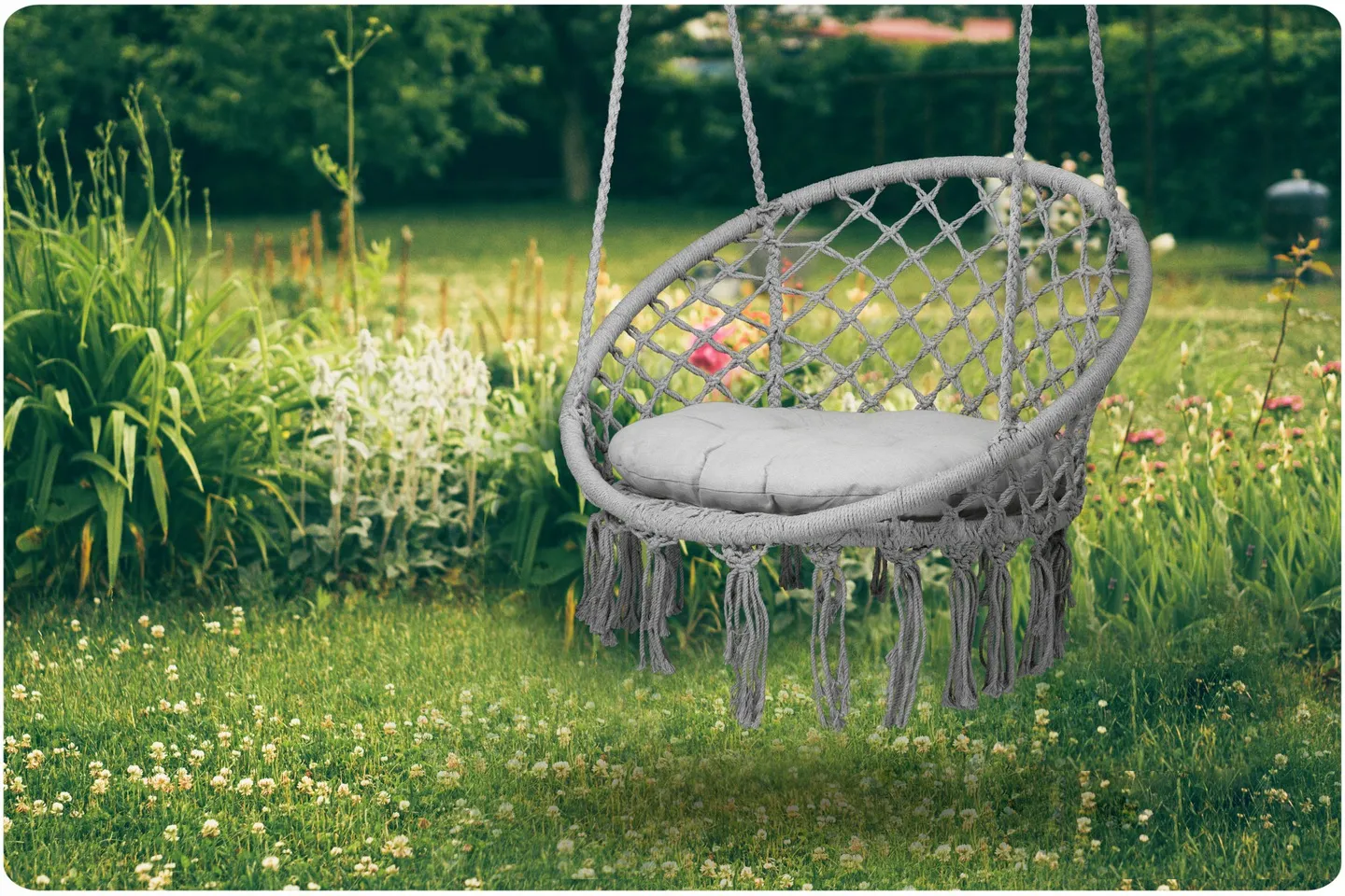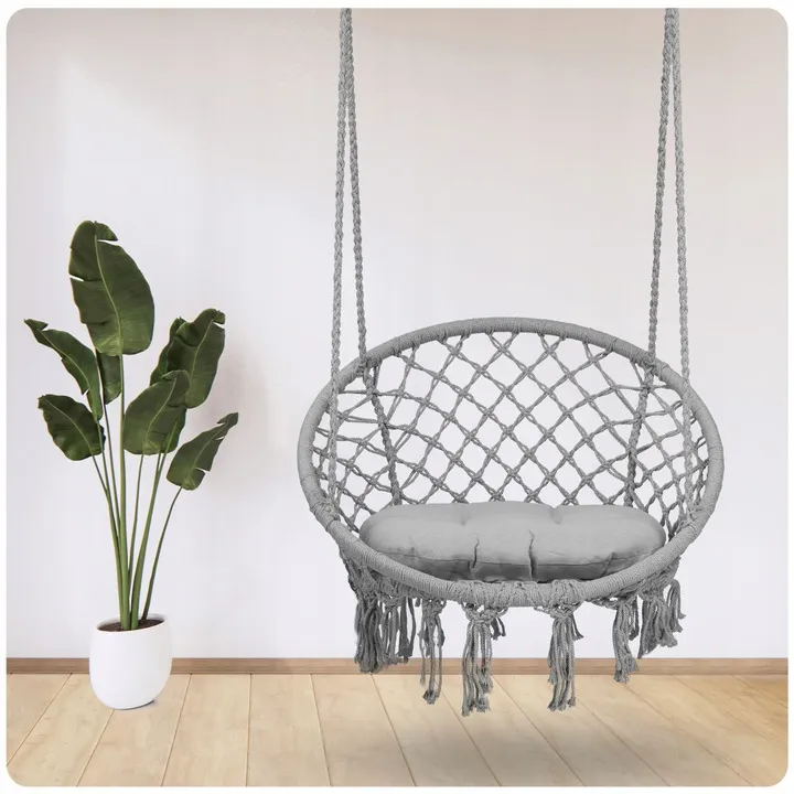 Fotel ogrodowy wiszący huśtawka BOHO szary + poduszka
