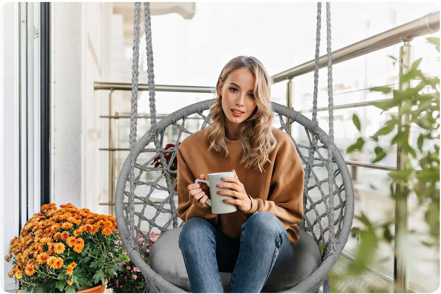 Wygodny fotel wiszący w nowoczesnym i będącym na czasie stylu boho.