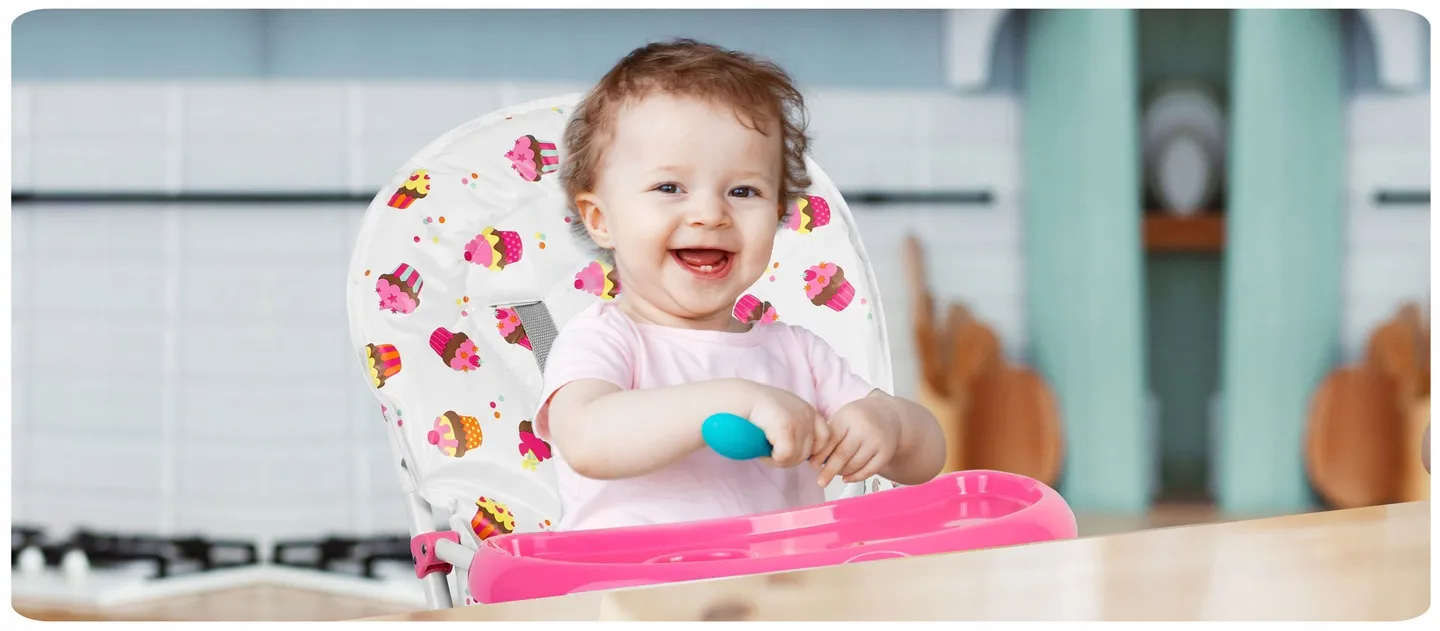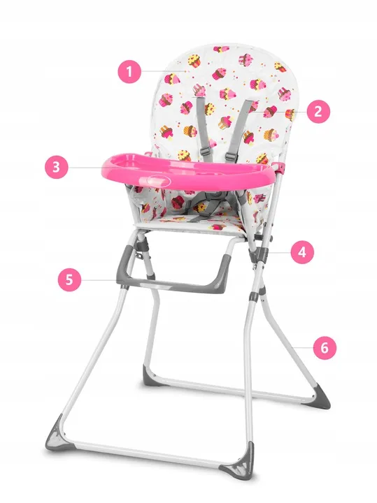 Pasy bezpieczeństwa z praktyczną klamrą zapewniają pełne bezpieczeństwo i ochronę dziecka przed samowolnym opuszczeniem krzesełka.