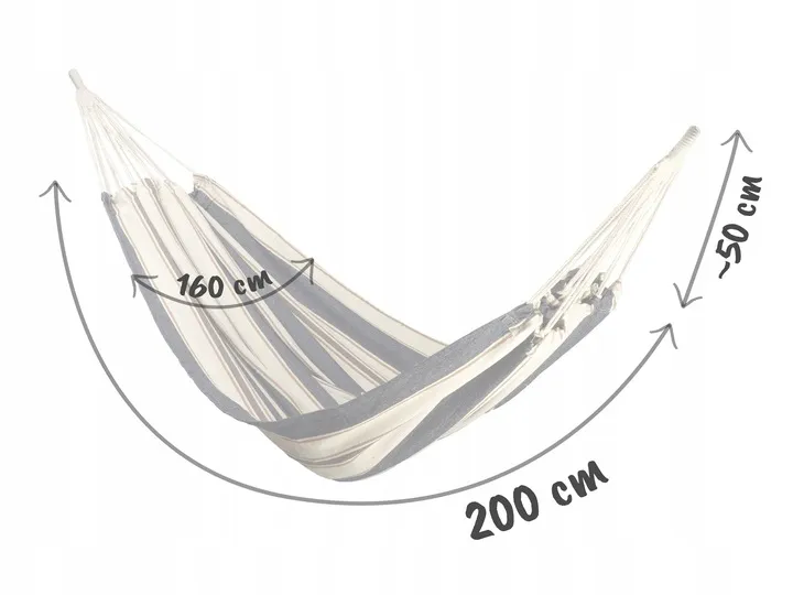 • wymiary hamaku 200 x 160 pozwolą Ci na wspaniały wypoczynek w letnie popołudnie,
