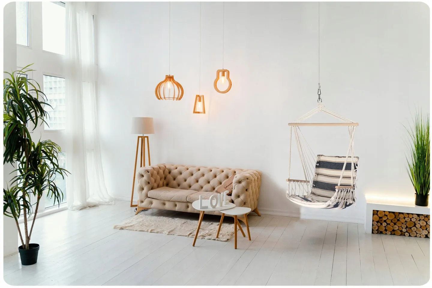 W zestawie 1,5m polipropylenowej liny o grubości 8mm przeznaczonej do zawieszenia krzesła wiszącego Lagos.