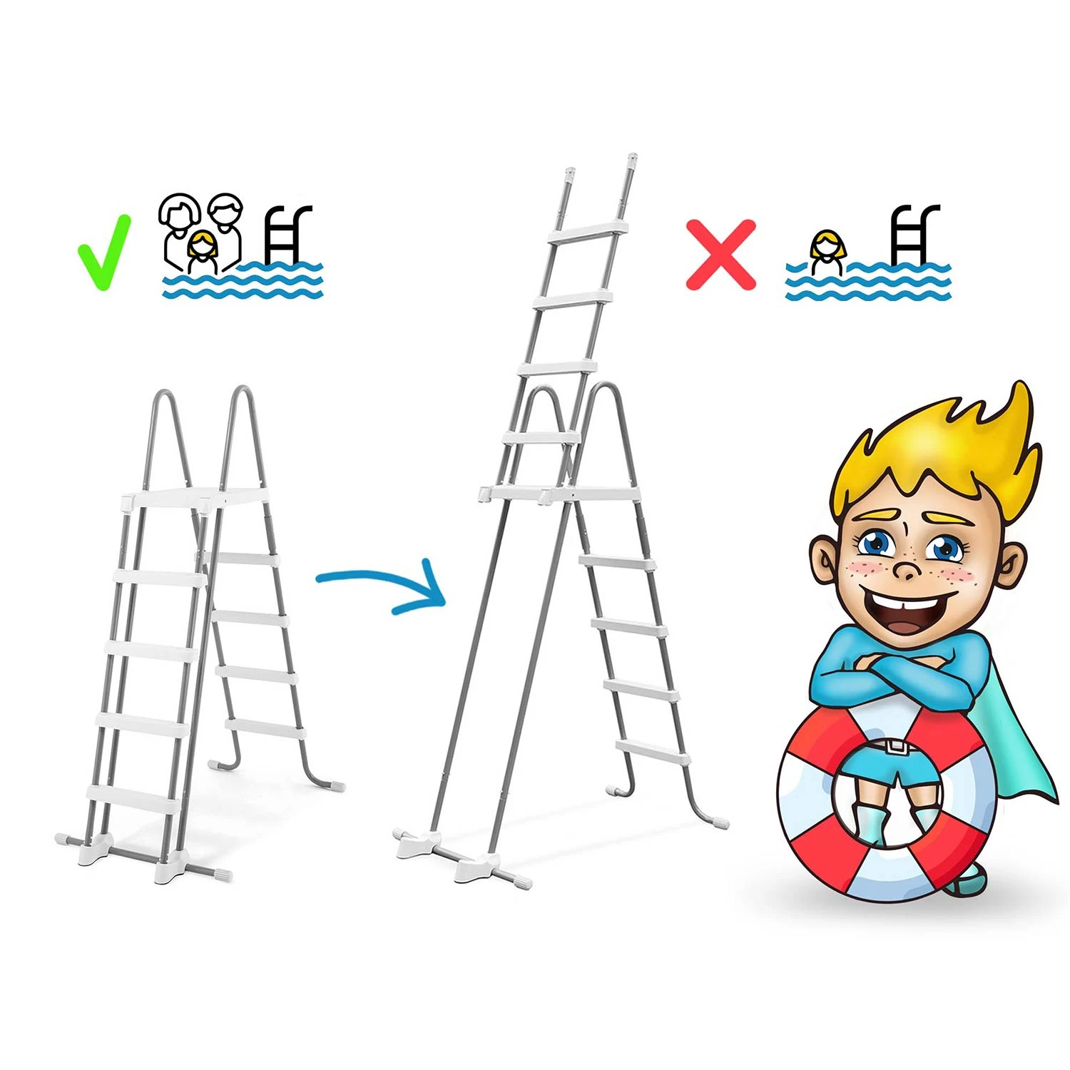 • Wysokość idealnie dobrana do wielkości basenu