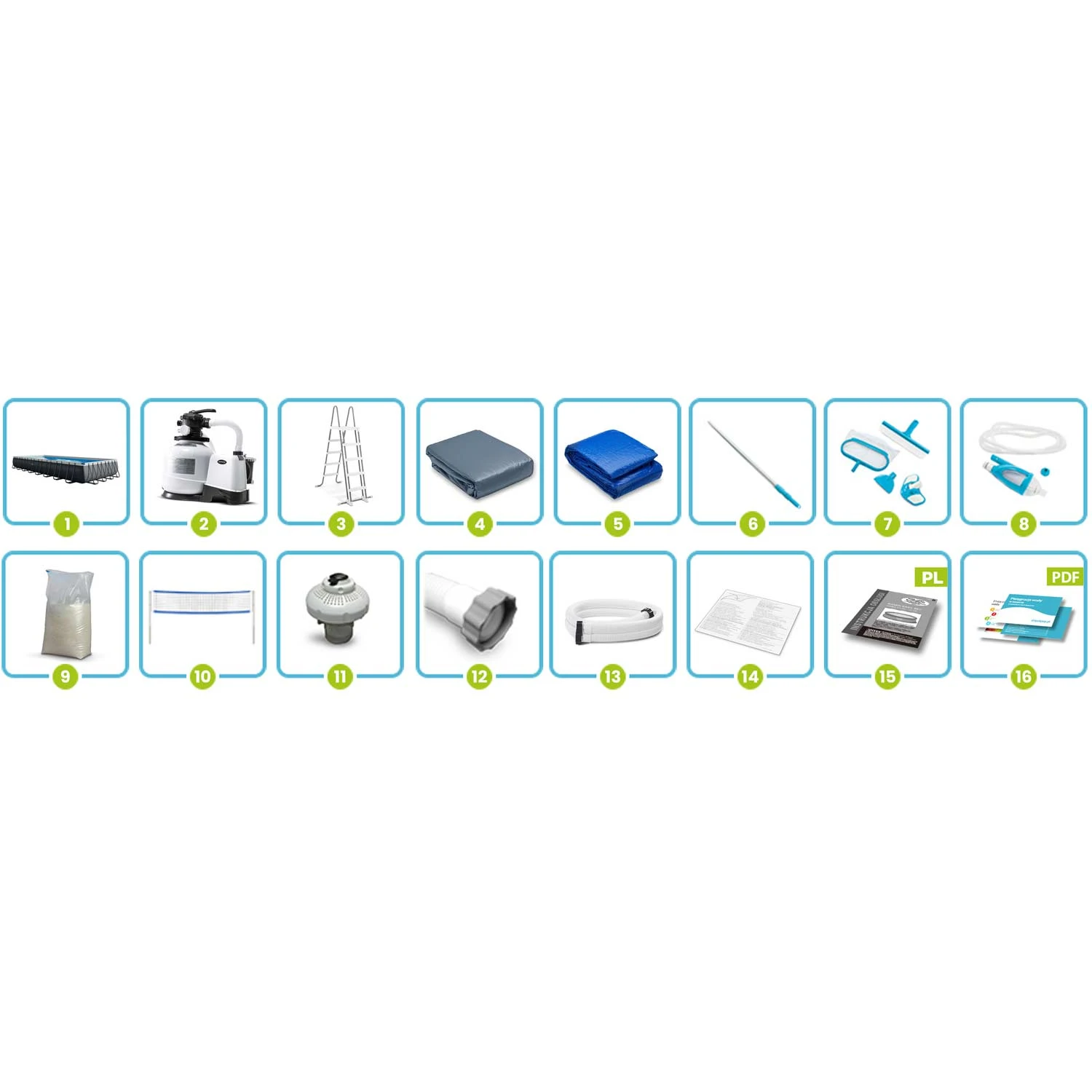 Basen stelażowy 975 x 488 x 132 cm ★★★★★ ZESTAW 15w1