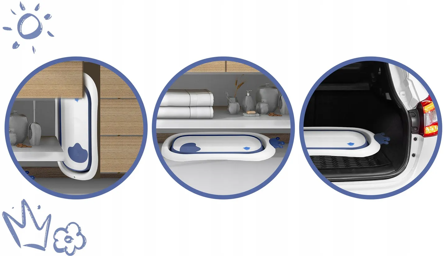 Dzięki możliwości złożenia wanienki w prosty sposób zabierzesz ją na wyjazd lub schowasz w łazience. Przydatna zarówno podczas codziennej pielęgnacji jak i w podróży.