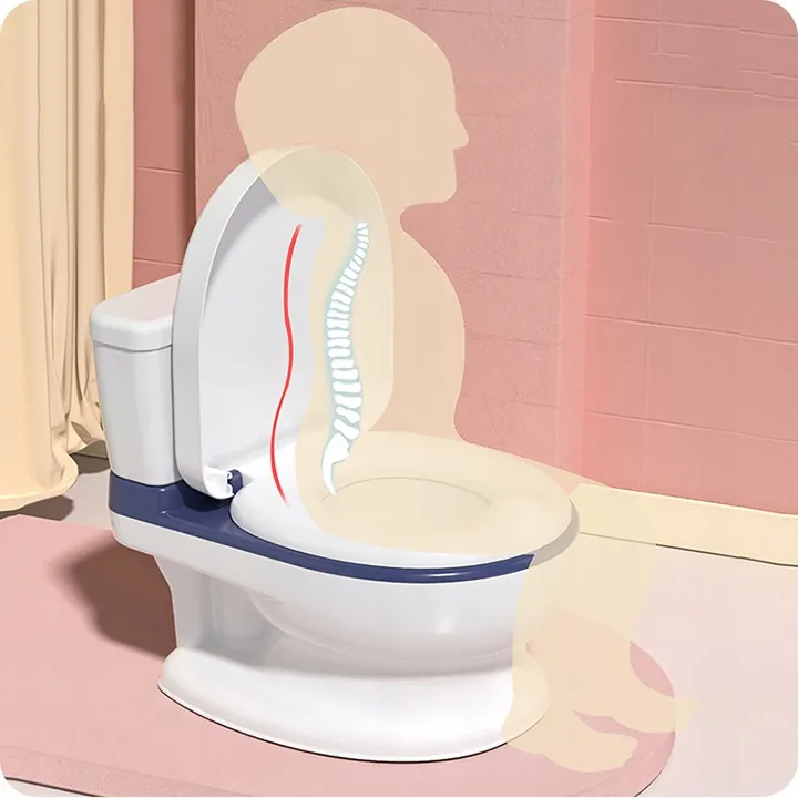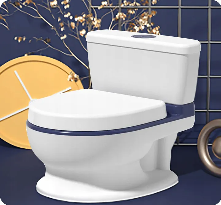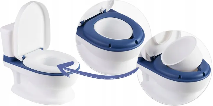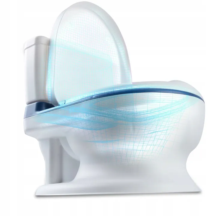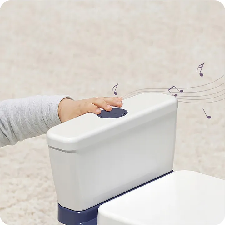 Nocnik posiada melodyjki, które dziecko może uruchomić po naciśnięciu przycisku symulującego spłuczkę.