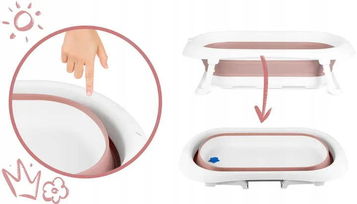 Dzięki możliwości złożenia wanienki w prosty sposób zabierzesz ją na wyjazd lub schowasz w łazience. Przydatna zarówno podczas codziennej pielęgnacji jak i w podróży.