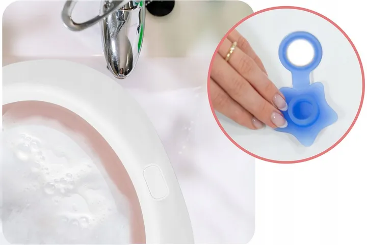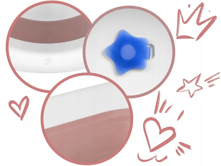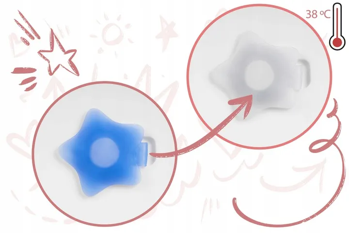 Korek w kształcie gwiazdki zmieni swój kolor z niebieskiego na biały, jeśli temperatura wody przekroczy 38°C.
