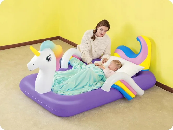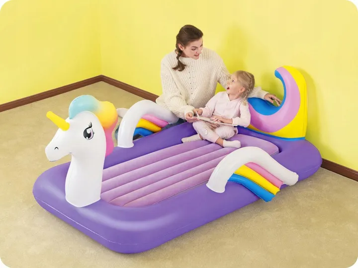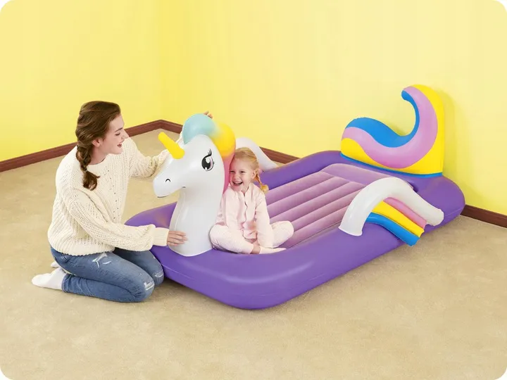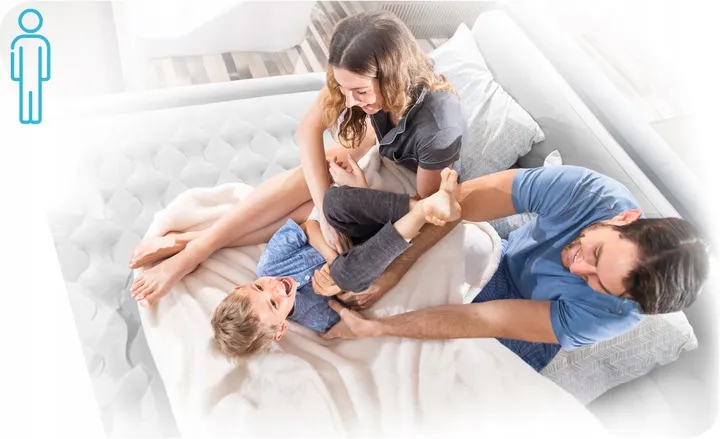 Za stabilność materaca odpowiada jego wewnętrzny stelaż. W materacach Bestway wykorzystano zaawansowaną technologię I-beam, opartą na łączeniu dolnej i górnej powierzchni materaca poziomymi pasami.