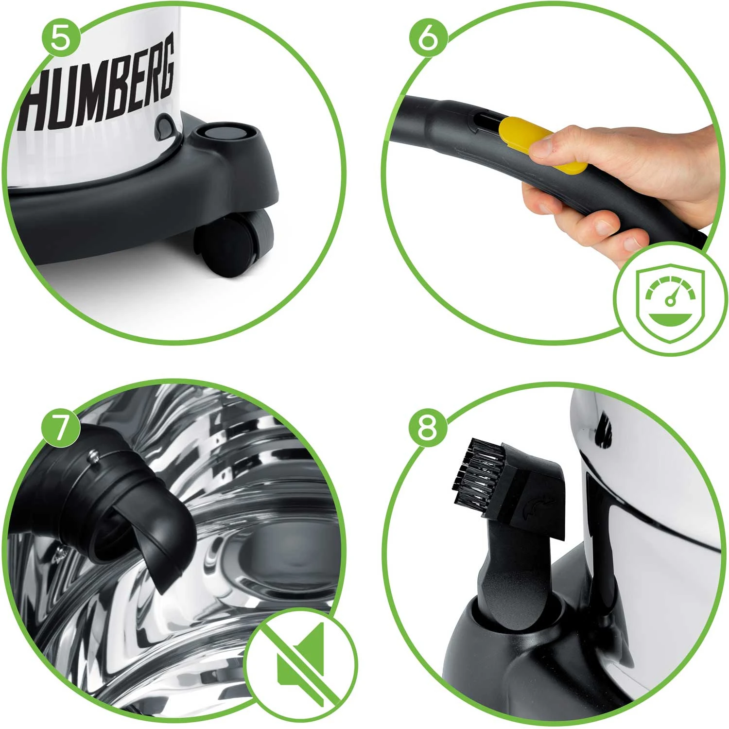 4. trwałe metalowe zaczepy, które nie połamią się nawet przy maksymalnym obciążeniu. Odkurzacz jest wyposażony w duży zbiornik o pojemności aż 20l.