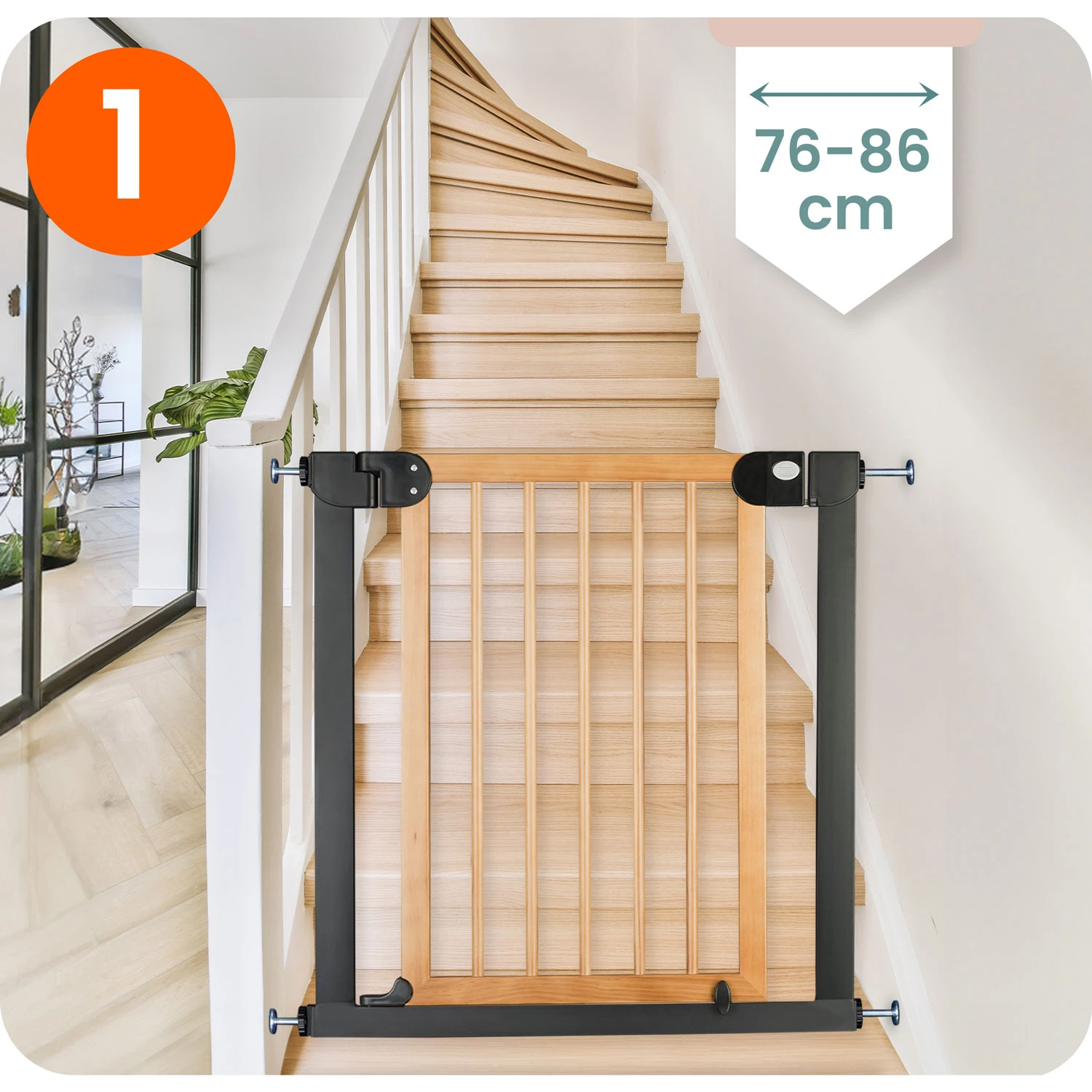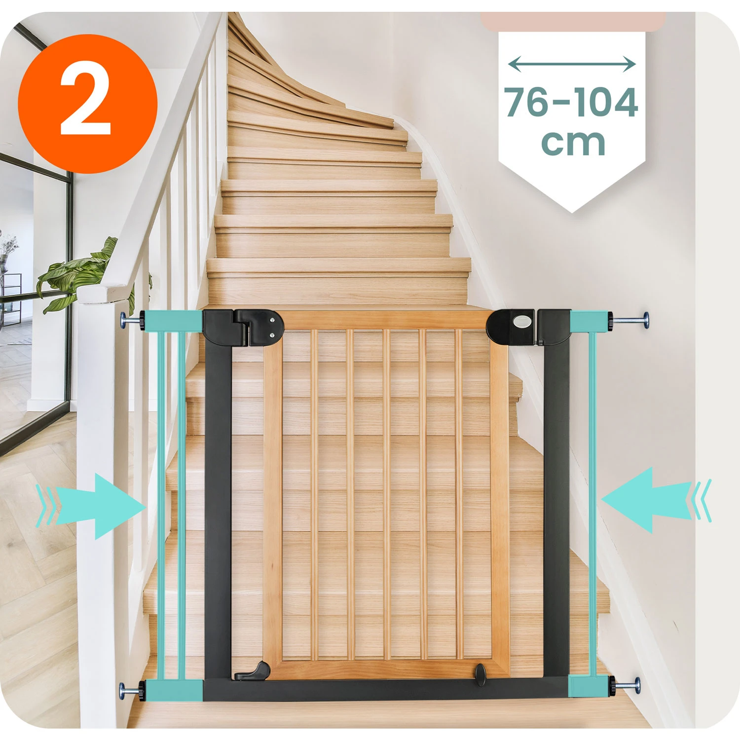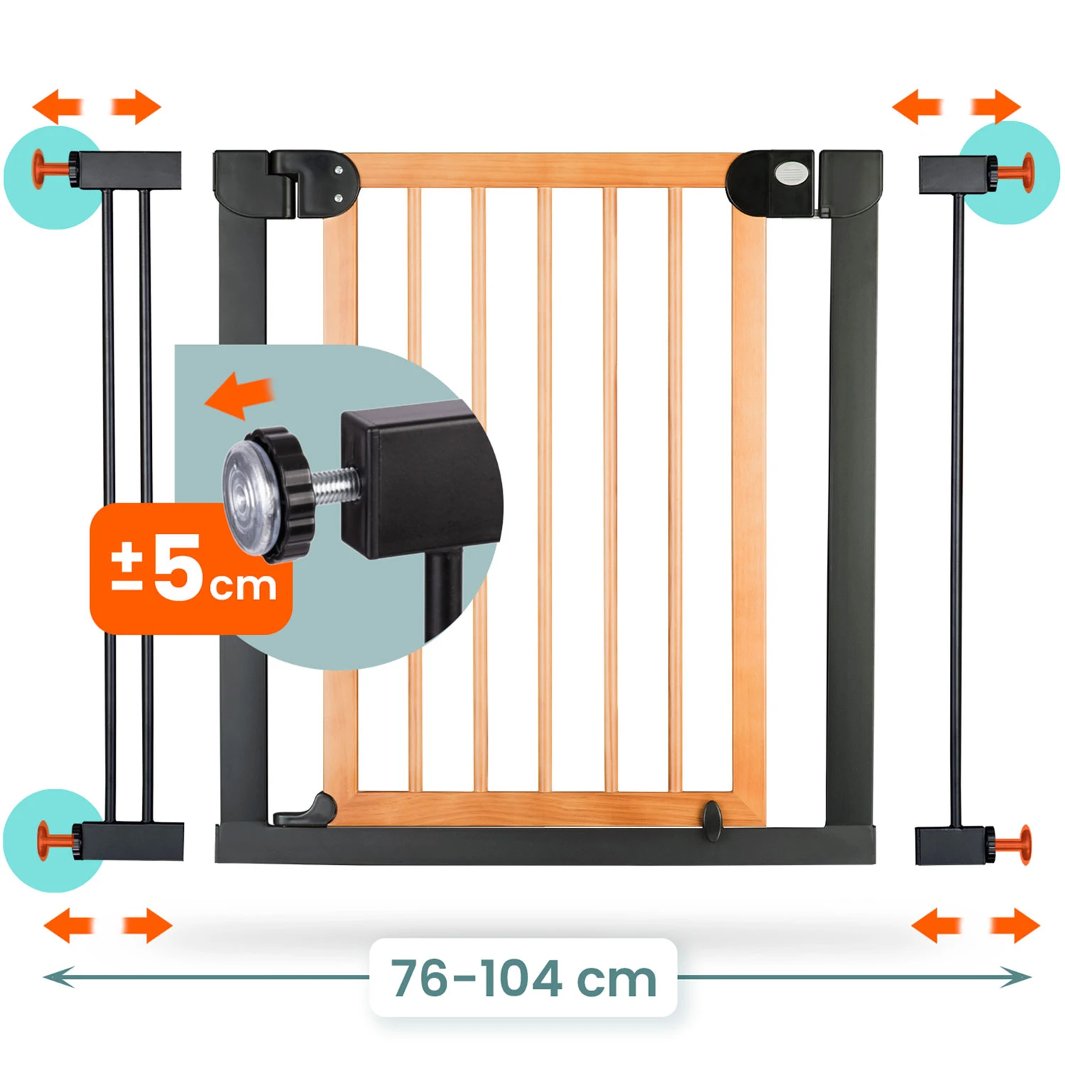 Regulowana szerokość pozwala na zamontowanie jej w drzwiach i przejściach od 76 do 104 cm.