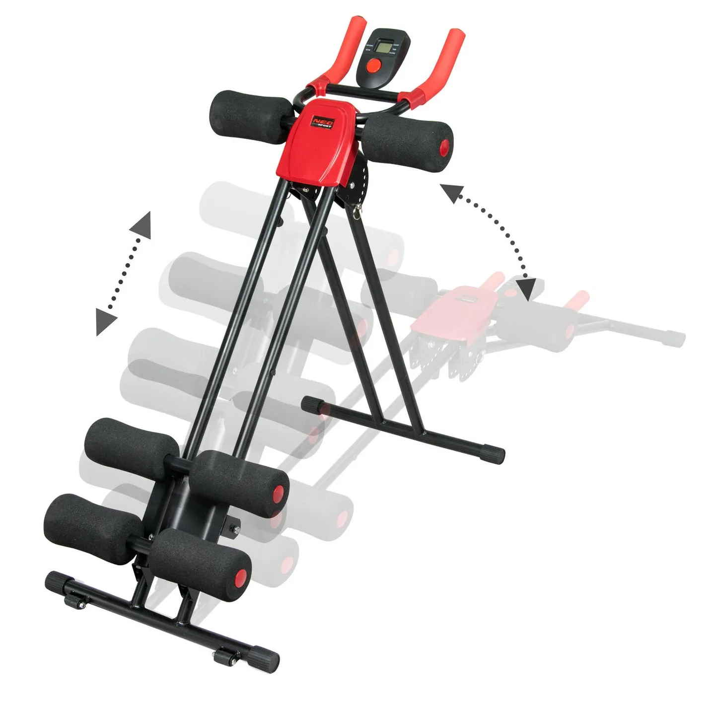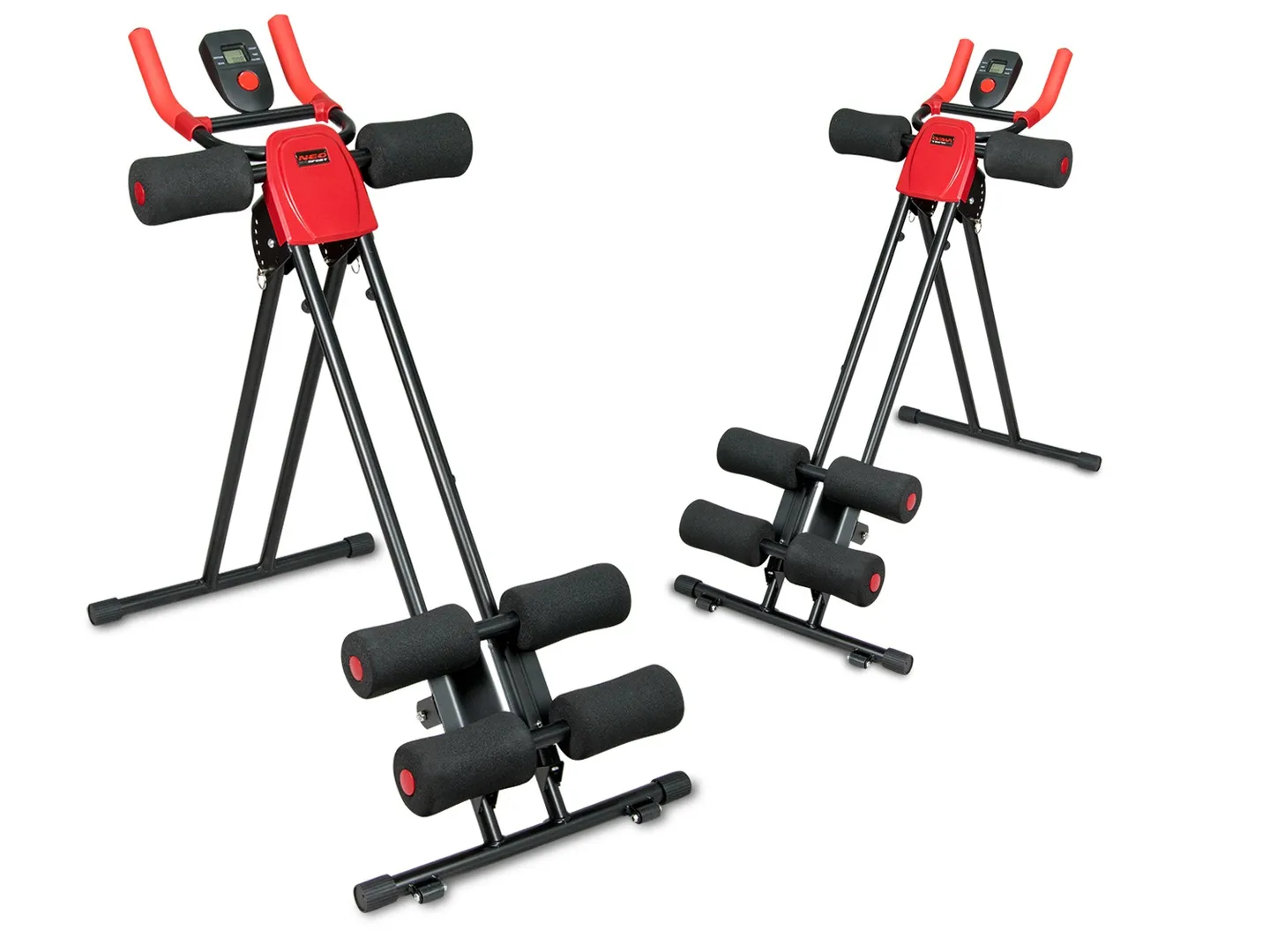 Ławeczka do ćwiczeń AB VERTICAL marki Neo-Sport to przyrząd, który pozwoli Tobie na idealne wyrzeźbienie mięśni brzucha. Dzięki czterostopniowemu poziomowi trudności, ławeczka jest przyjazna dla początkujących jak i nieco bardziej zaawansowanych użytkowników. Solidna konstrukcja pozwala na utrzymanie sporej wagi ? 120 kg. Specjalna konstrukcja zawiera 2 pary rolek wykonanych z elastycznej pianki, które zapewniają przyjemny trening. Dodatkowo na bieżąco można kontrolować ilość spalonych kalorii, czas i tempo powtórzeń oraz ilość wykonanych skłonów.