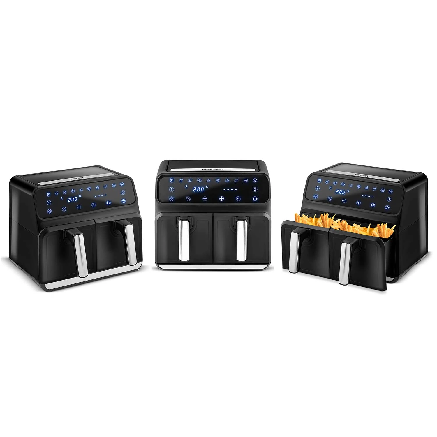 Frytkownica beztłuszczowa Air fryer frytownica XXL 8l dwukomorowa Berdsen BD-653 czarno-srebrna