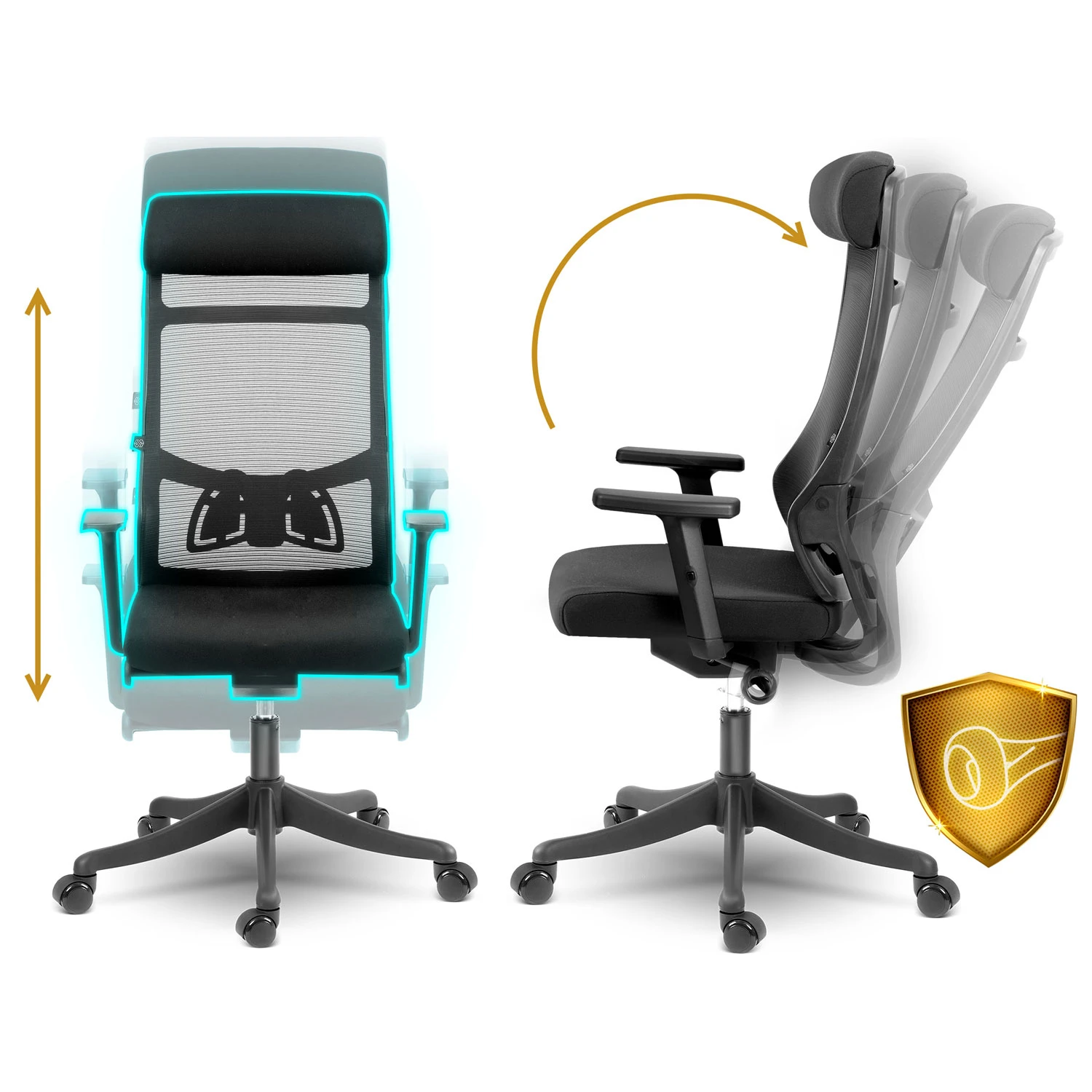 Wyprofilowana część lędźwiowa pomaga utrzymać ergonomiczną bezpieczną postawę. Dopasowuje się do kształtu Twojej sylwetki, gwarantując wygodę podczas siedzenia.