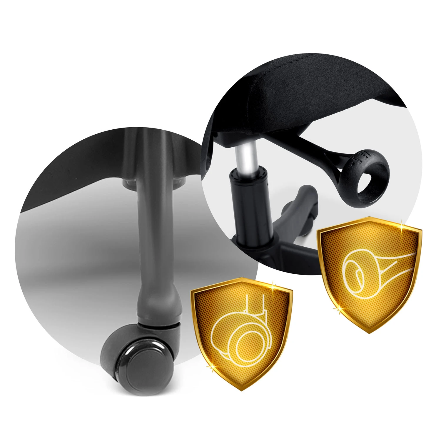 Solidna podstawa wyposażona jest w nylonowo-kauczukowe kółka, które poruszają się cicho i nie rysują podłogi, a elegancki obracający się podnośnik umożliwi blokadę kąta nachylenia w trzech pozycjach.