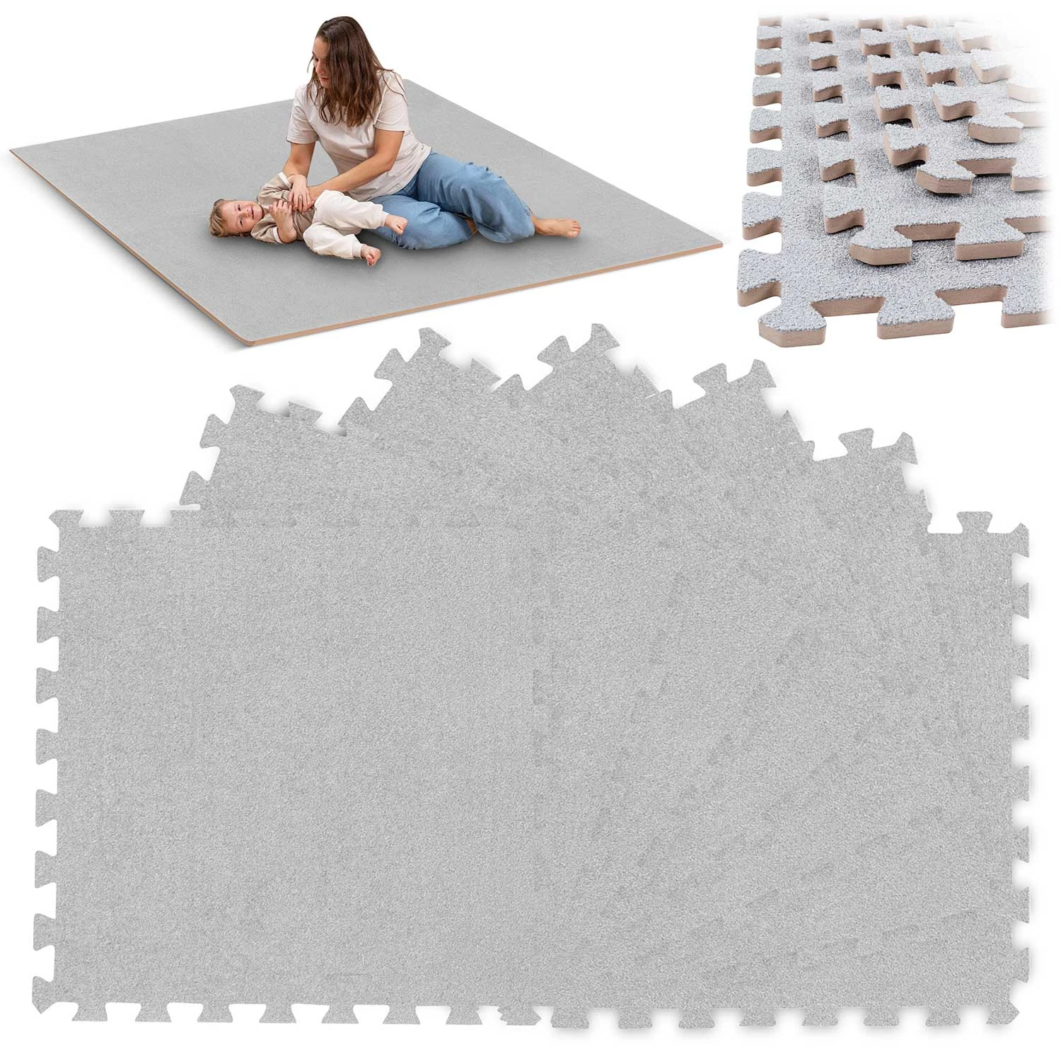 Zestaw składa się z 6 mat o łącznej powierzchni 2,16 m², które możesz dowolnie ze sobą łączyć. Matę wykonano z mocnego tworzywa, które zapewnia ochronę i jest miękkie, a dodatkowo posiada przyjemną dla stóóp strukturę dywanu.
