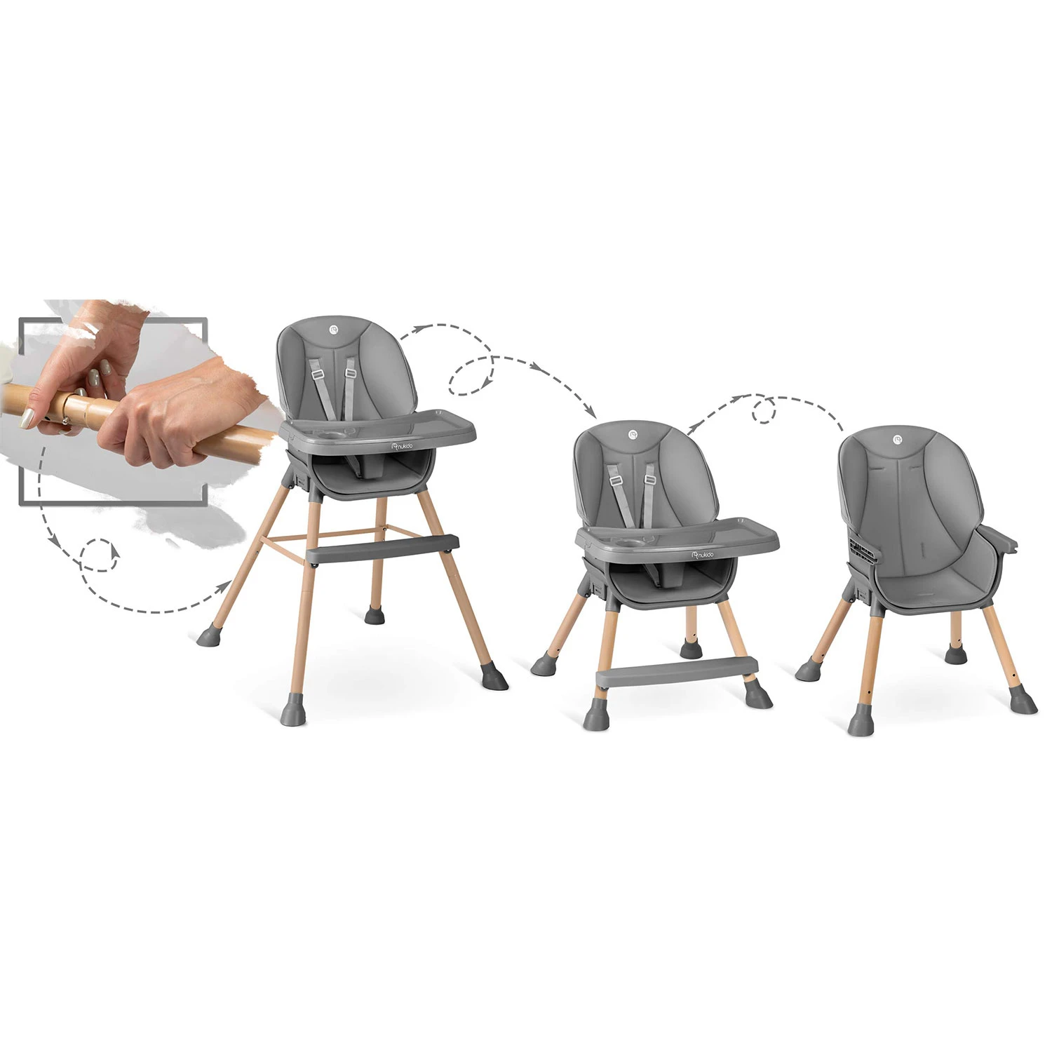 Krzesełko daje możliwość swobodnego regulowania odległości tacki od dziecka. Można je także w każdej chwili całkowicie zdemontować.