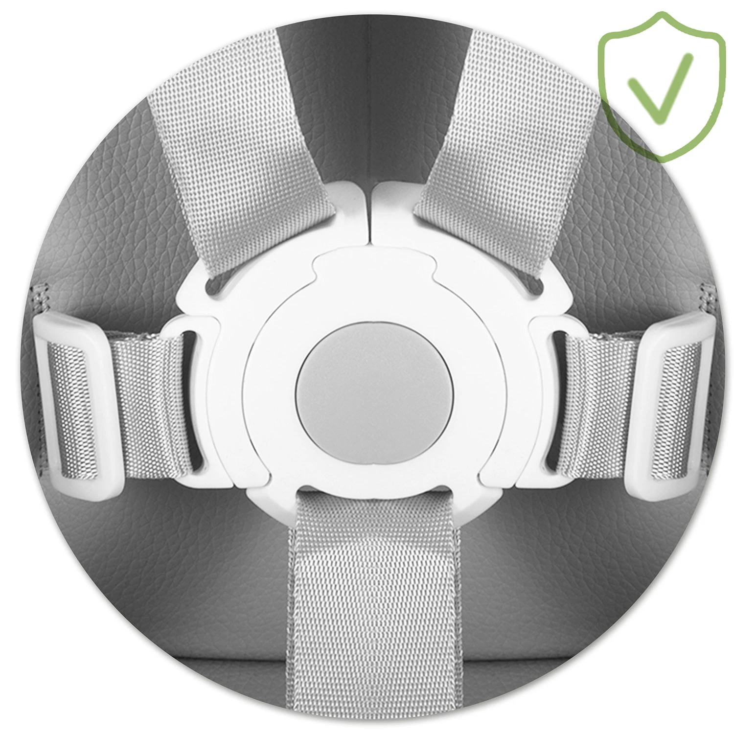 Dodatkowe zabezpieczenie, 5-punktowe pasy bezpieczeństwa, które nie pozwoli na samoistne wysunięcie się dziecka z krzesełka. Można je całkowicie zdemontować gdy nie będzie ono już potrzebne.