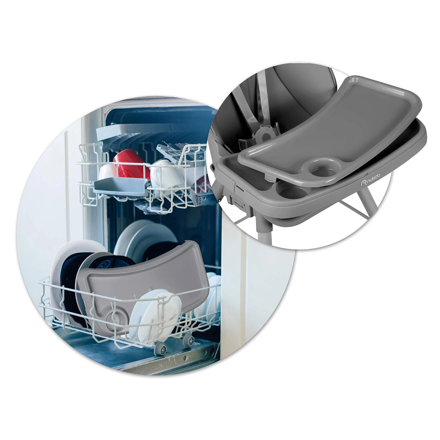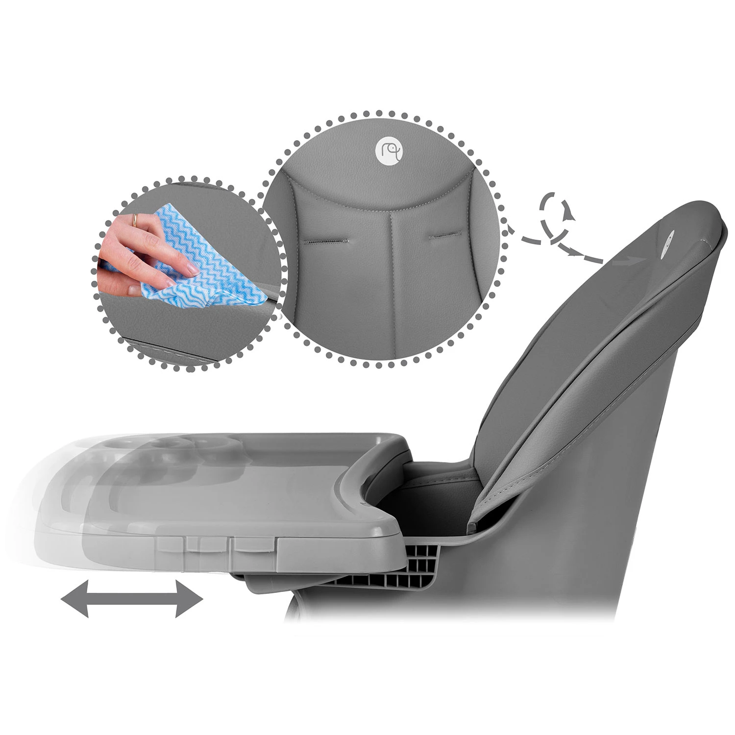 Zdejmowana nakładka na tackę znacząco ułatwia utrzymanie czystości. Miękki i komfortowy materiał poszycia wykonany jest z materiału, który nie chłonie zabrudzeń.