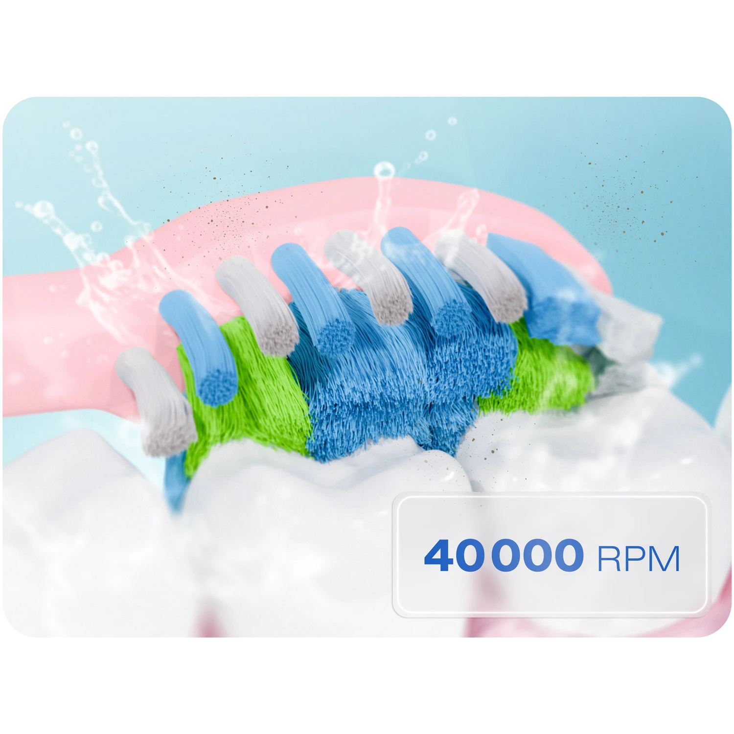 • Wydajny silnik generuje aż 40 000 drgań na minutę, gwarantując skuteczne i precyzyjne czyszczenie.