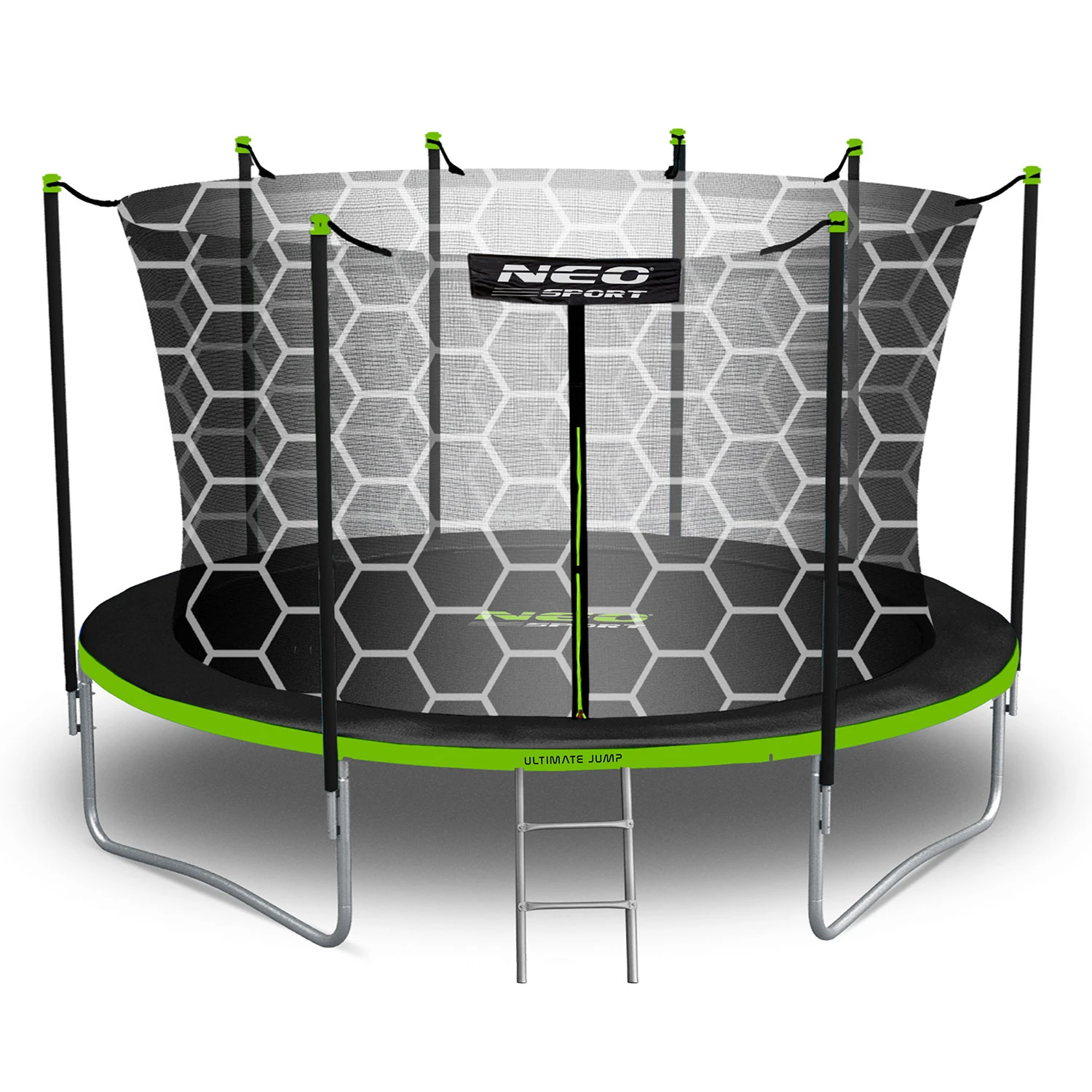 Stelaż trampoliny NEO SPORT został wykonany z wysokiej jakości stalowych rurek, odpornych na korozję, promieniowanie UV i intensywne użytkowanie.