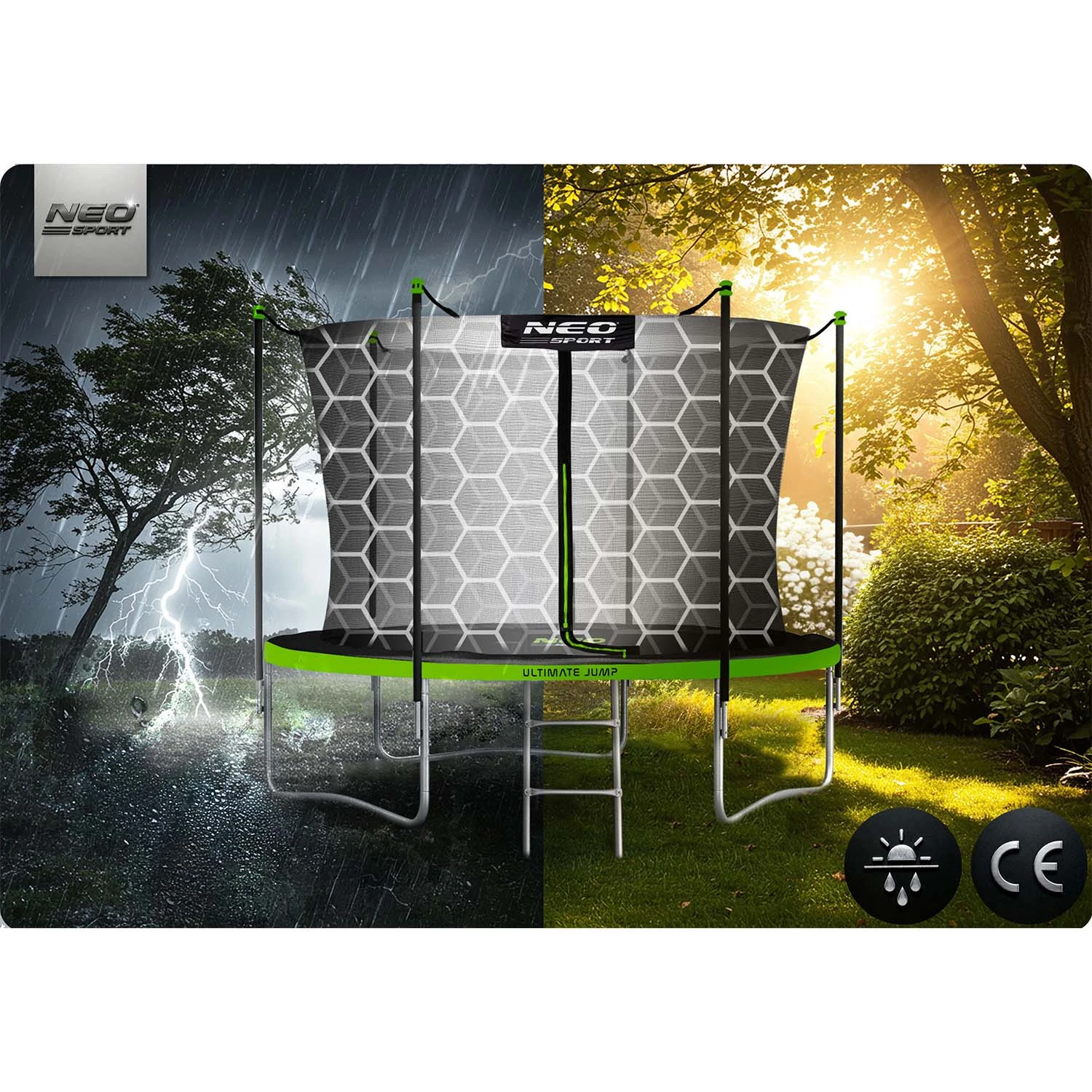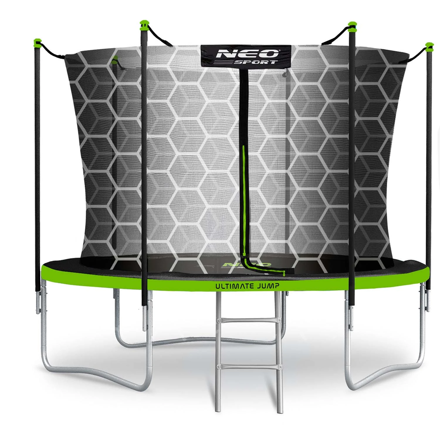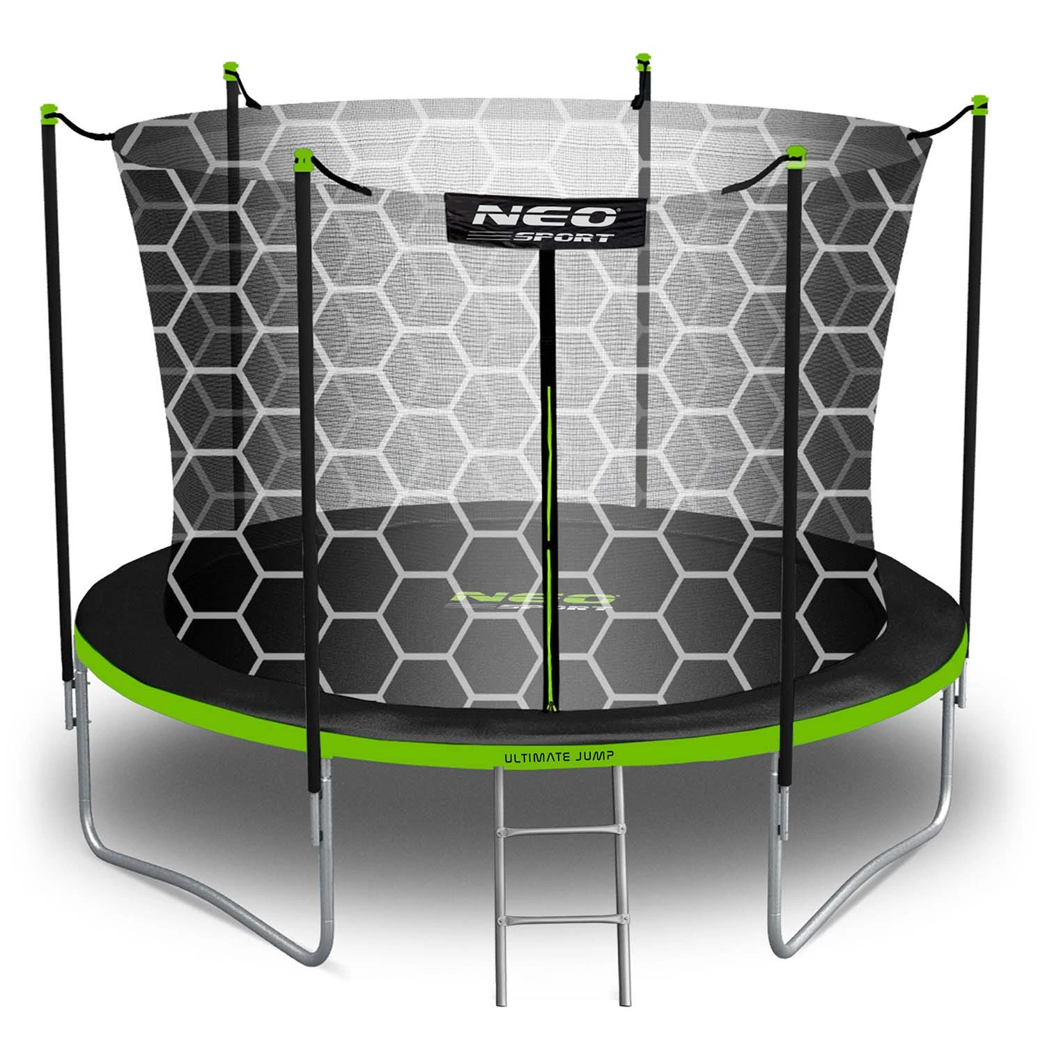 Stelaż trampoliny NEO SPORT został wykonany z wysokiej jakości stalowych rurek ocynkowanych, odpornych na korozję, promieniowanie UV i intensywne użytkowanie.