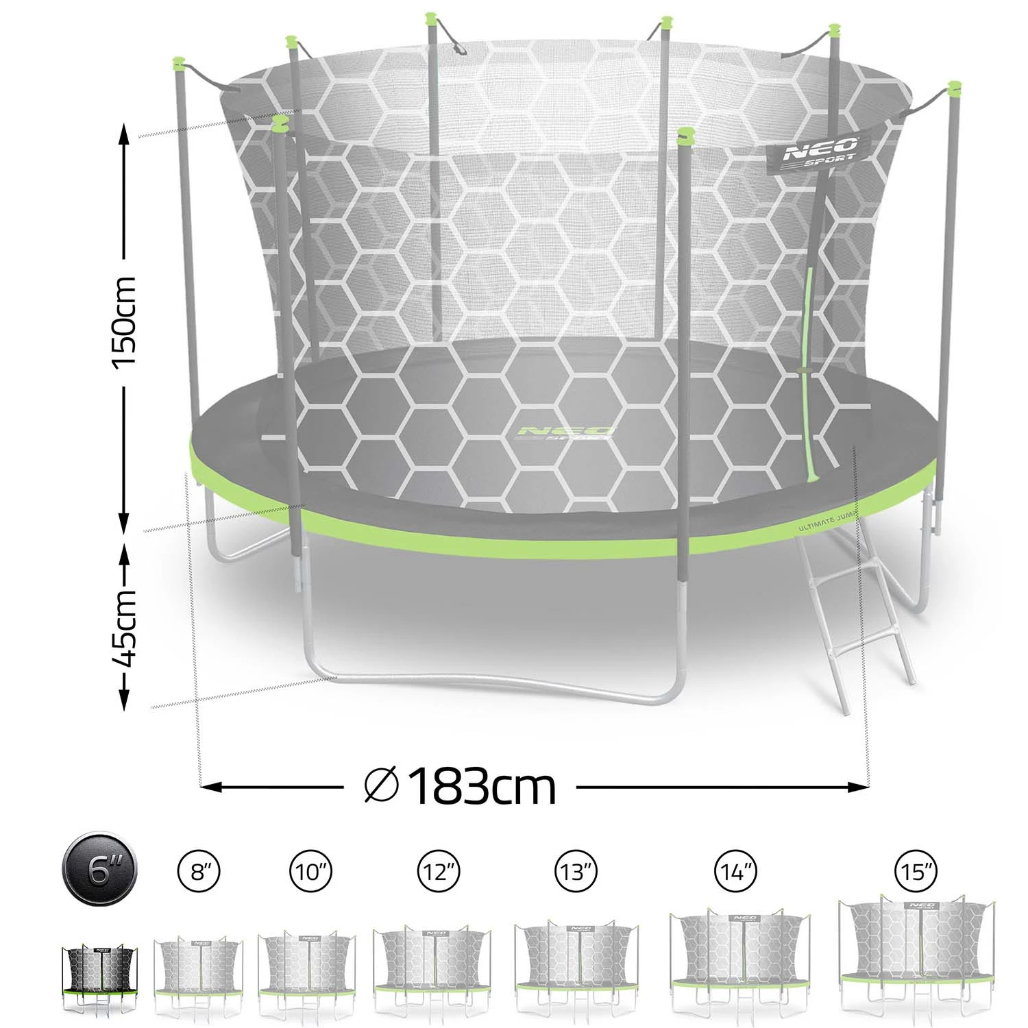 Trampolina ogrodowa 6ft/183cm z siatką wewnętrzną i drabinką Neo-Sport