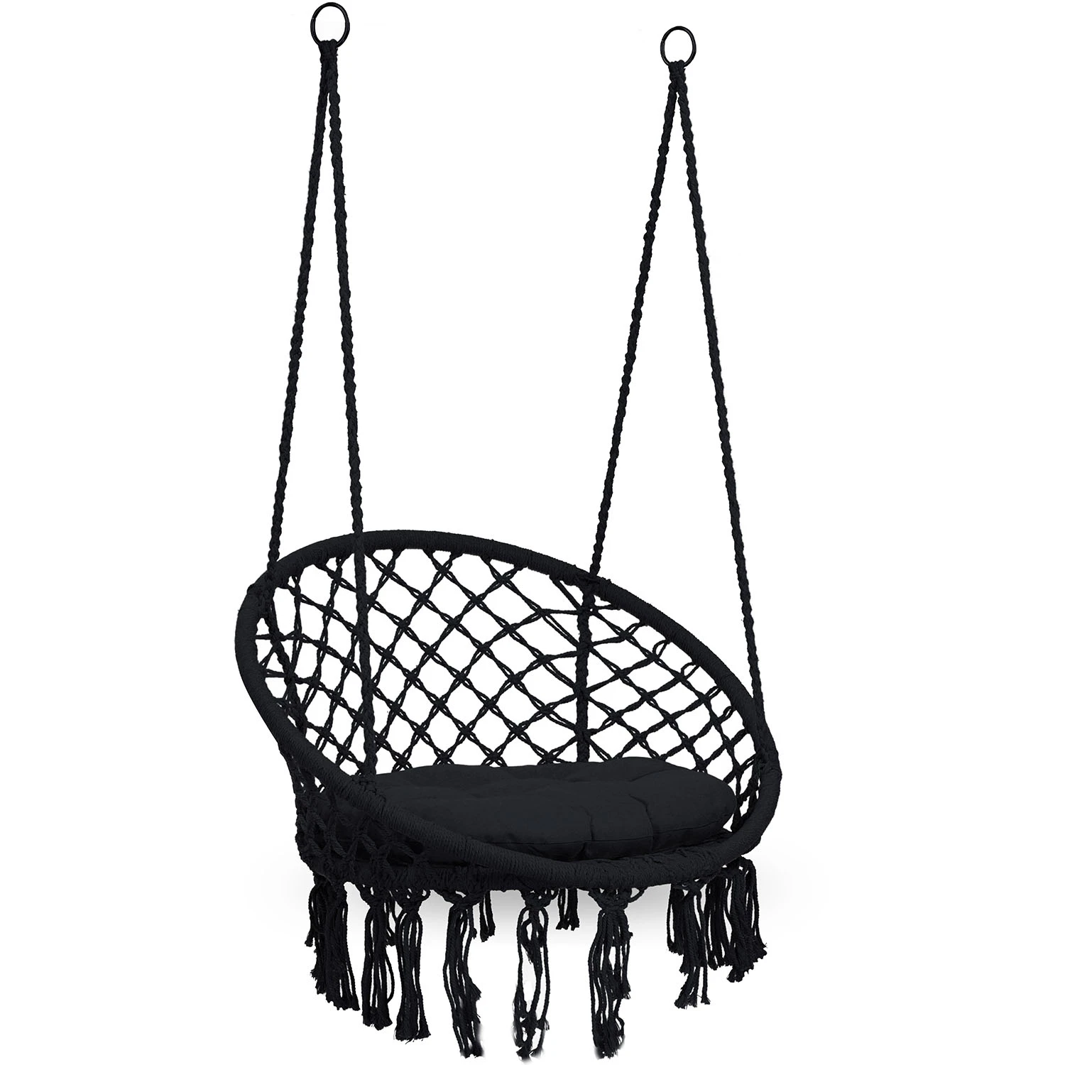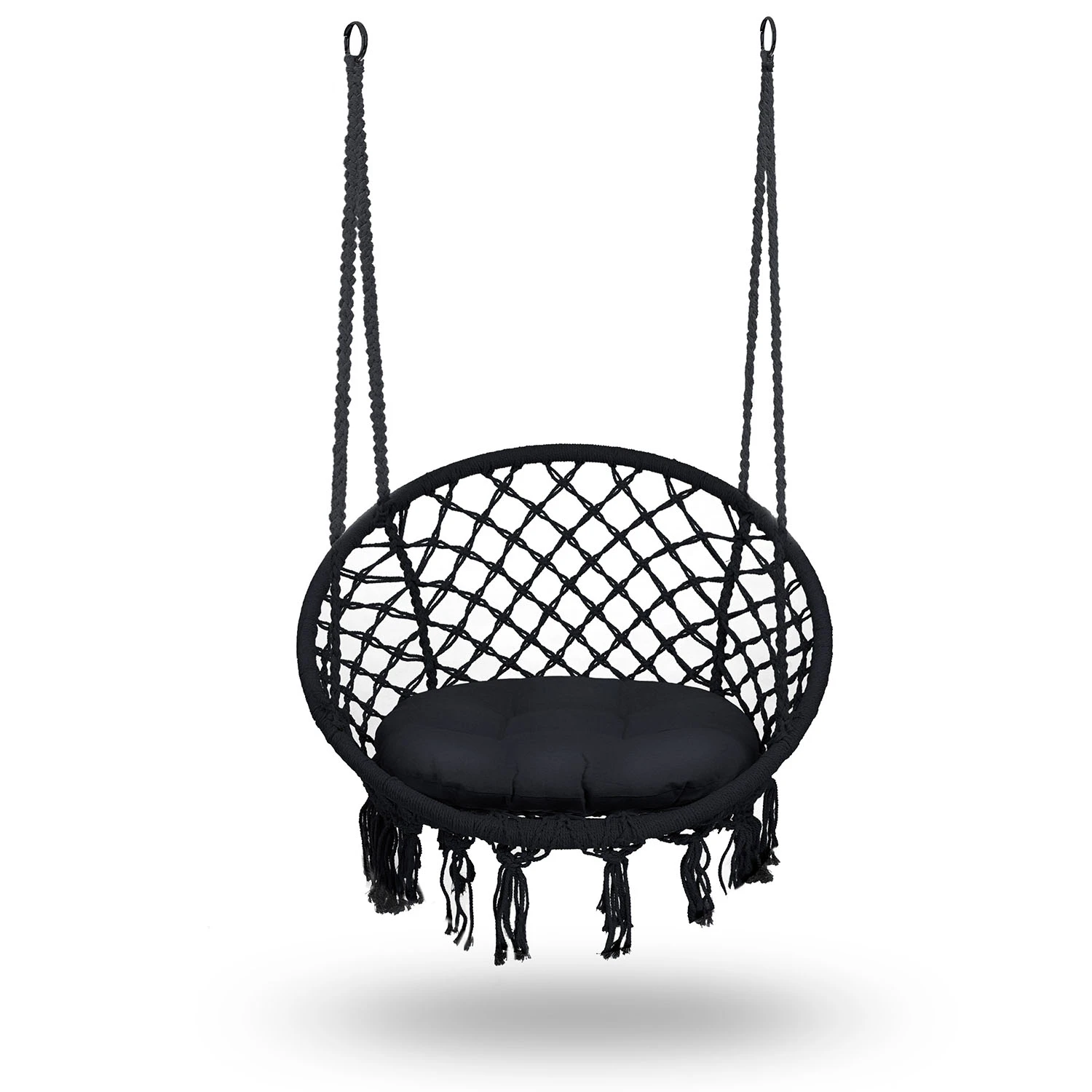 Wygodny fotel wiszący w nowoczesnym i będącym na czasie stylu boho.