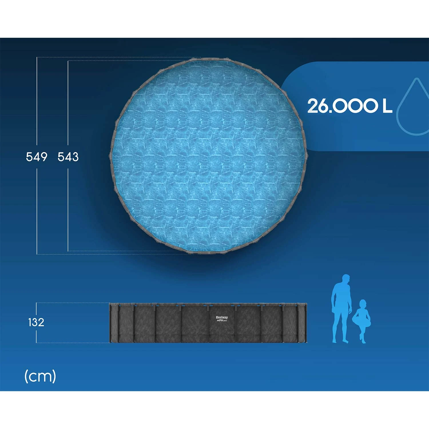 • Wymiary basenu 549 x 132 cm