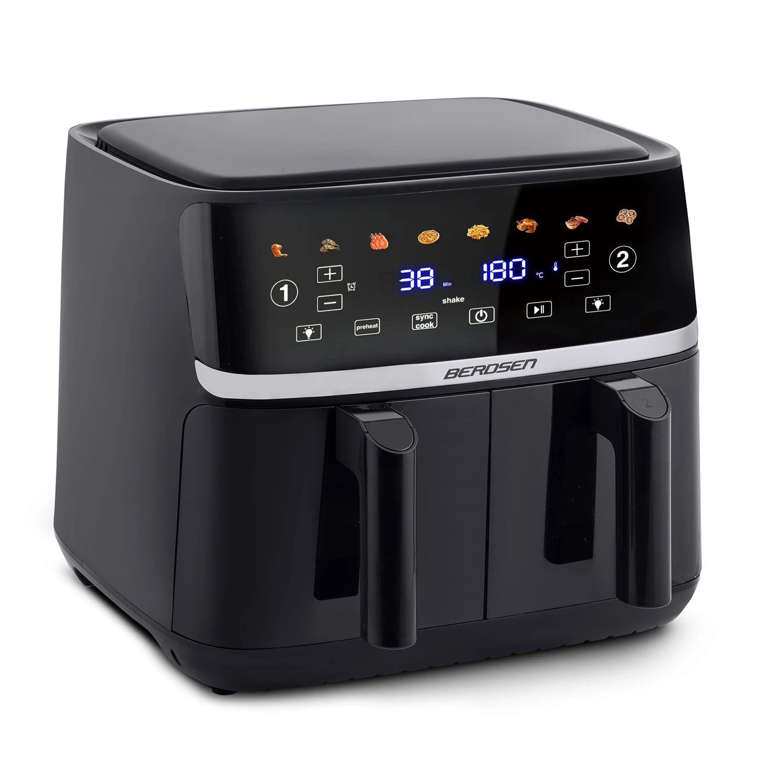Duża frytkownica beztłuszczowa 10,2l Air fryer XL dwukomorowa Berdsen 1700W BD-657 czarna