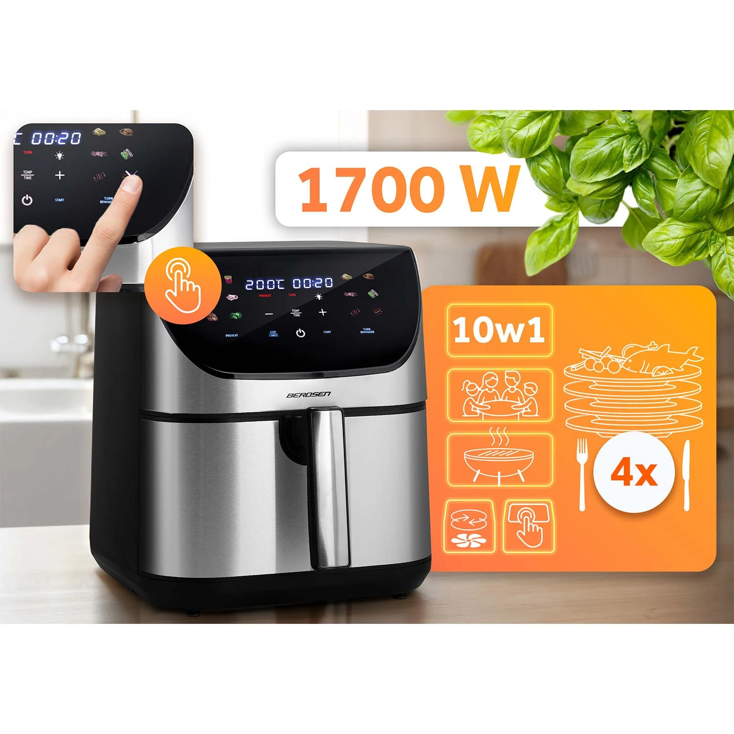 Frytkownica beztłuszczowa Air fryer frytownica 8l Berdsen 1700W BD-659 srebrna