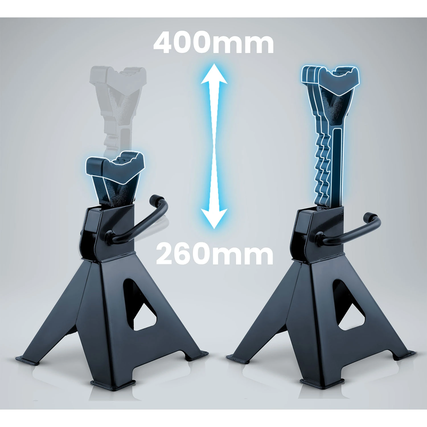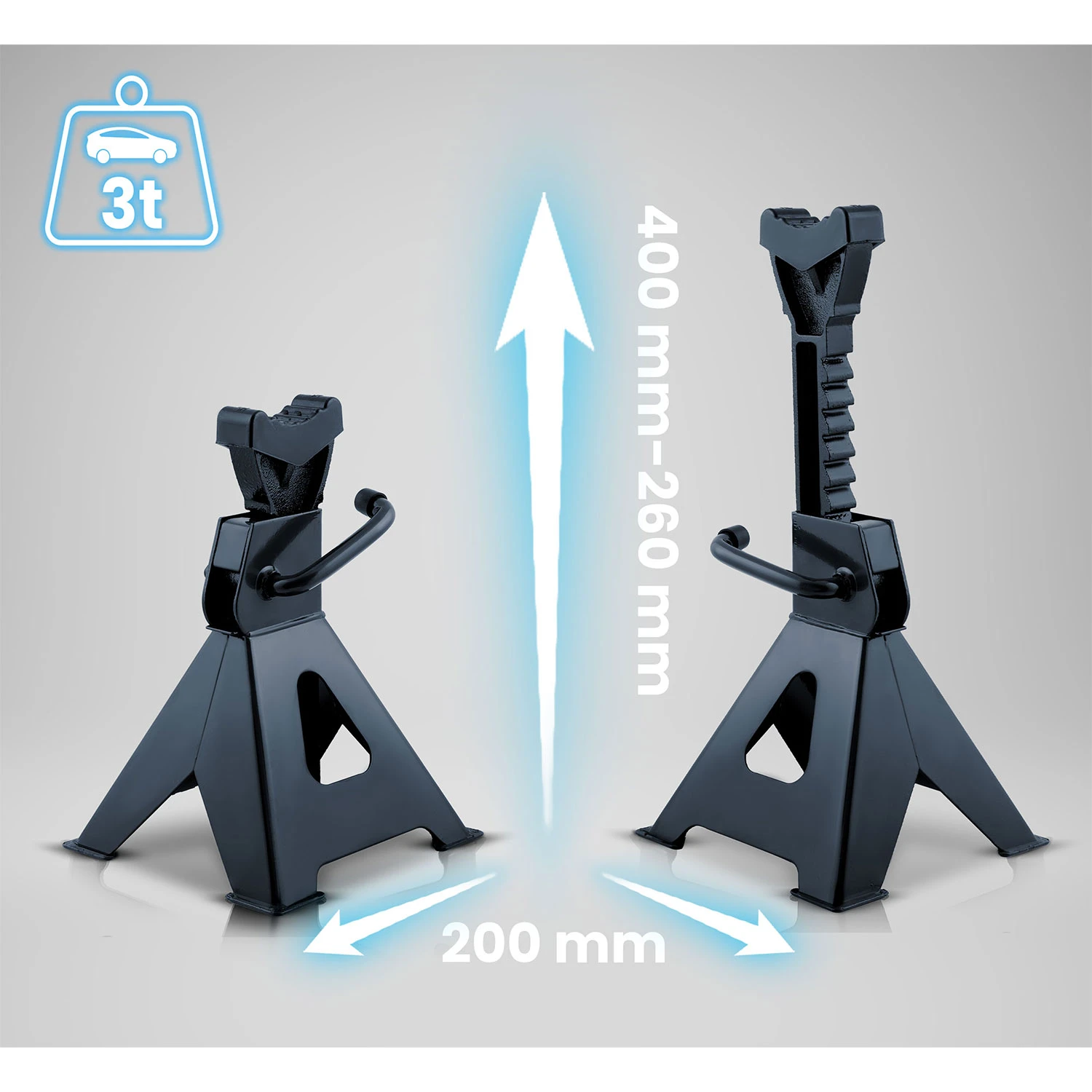 Kobyłki wyposażono w wygodny mechanizm zapadkowy, który umożliwia szybką i bezpieczną regulację wysokości w zakresie od 260 mm do 400 mm. Dzięki temu z łatwością ustawisz pojazd na odpowiednim poziomie – bez kombinowania i tracenia czasu.