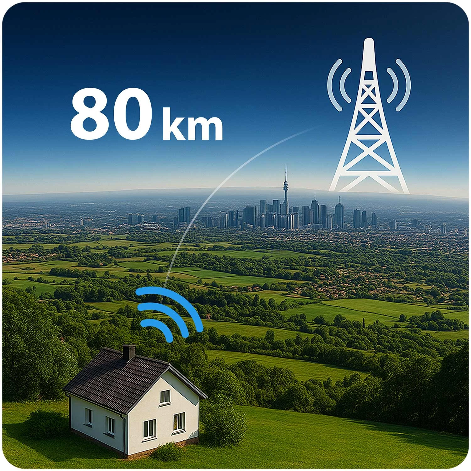 • Zasięg do 80 km – świetna dla miast i terenów wiejskich.