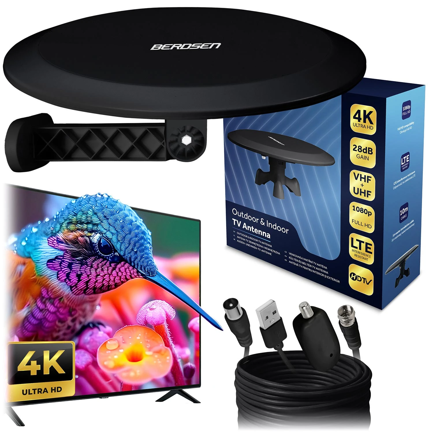 Antena wewnętrzna zewnętrzna TV ultra HD 4K Berdsen BD-955 czarna