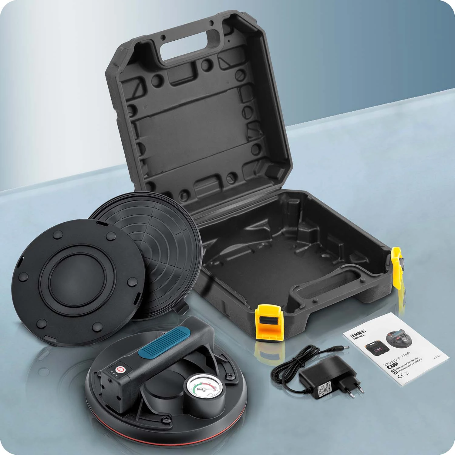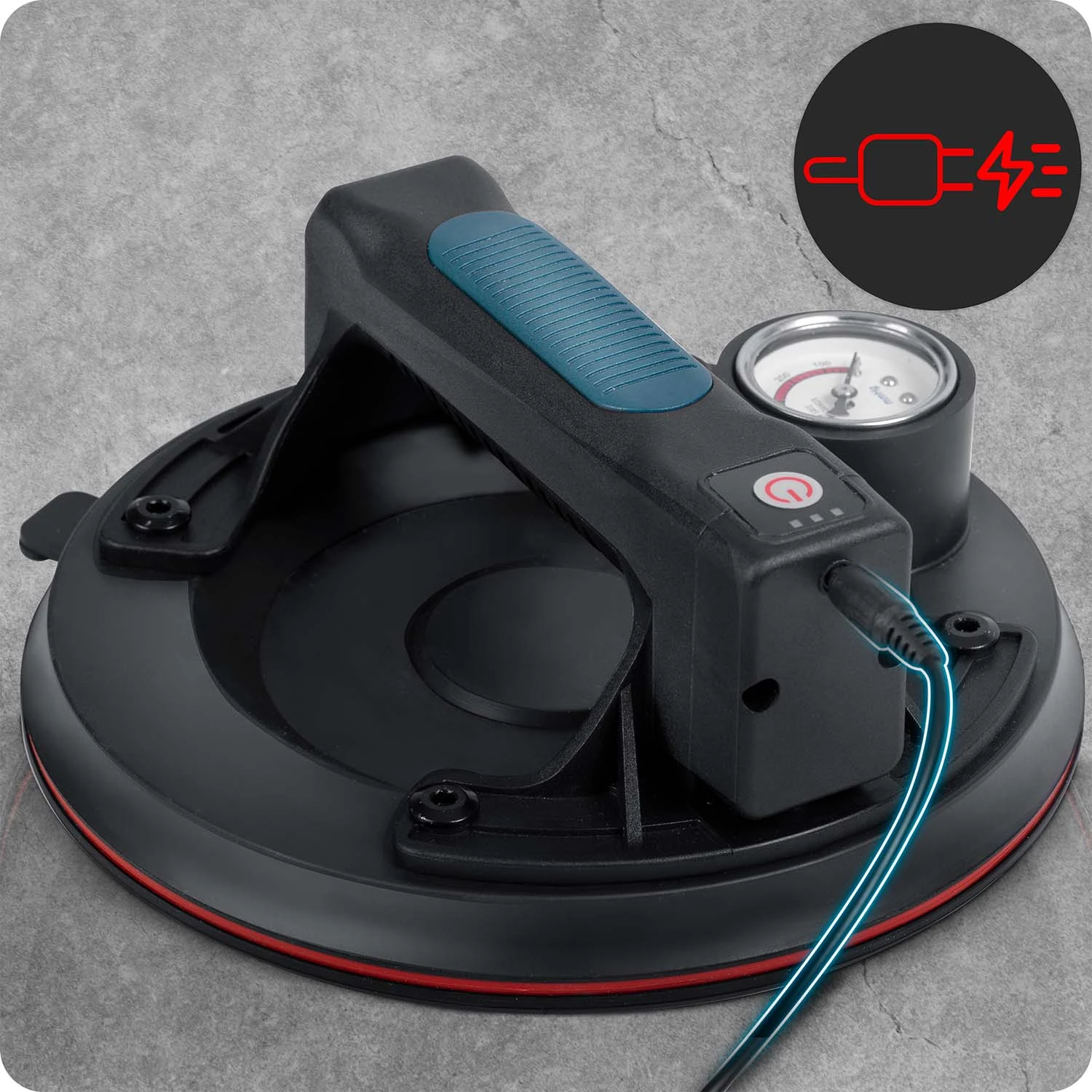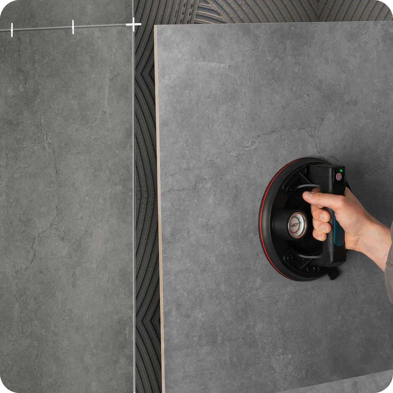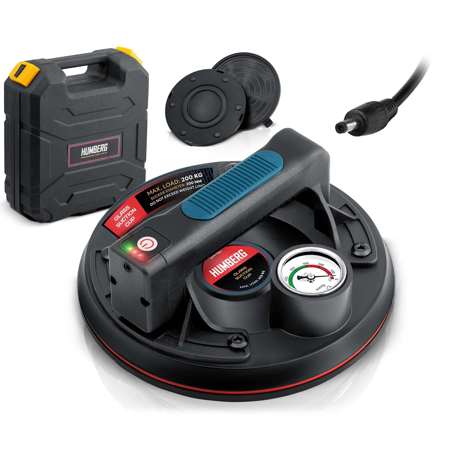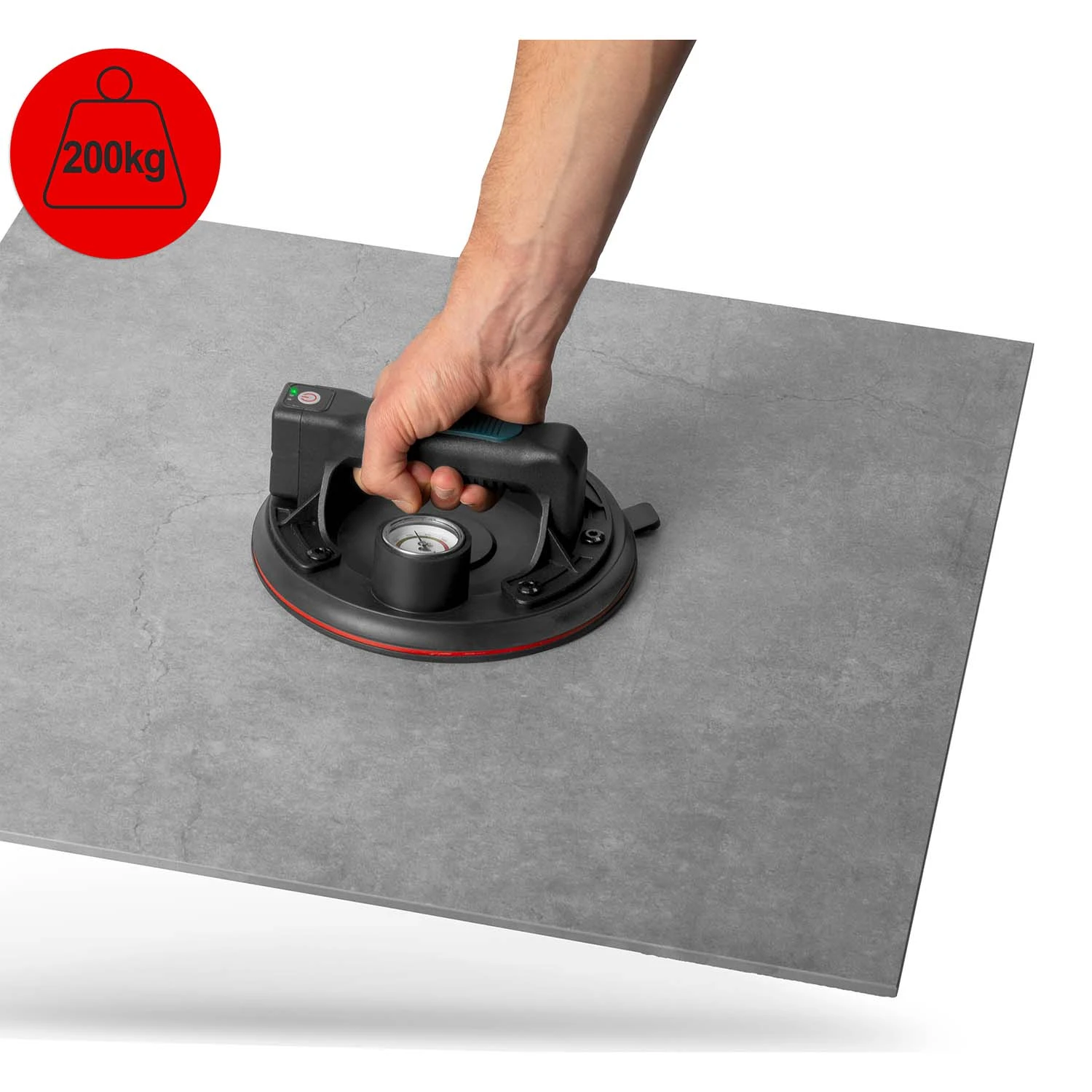 Profesjonalna przyssawka z siłą udźwigu do 200 kg, zasilana akumulatorem litowym 2400 mAh. Szybkie ładowanie (tylko 2 h), aż do 8 h pracy na jednym naładowaniu. Kompaktowa, idealna do precyzyjnych zadań montażowych i transportowych.