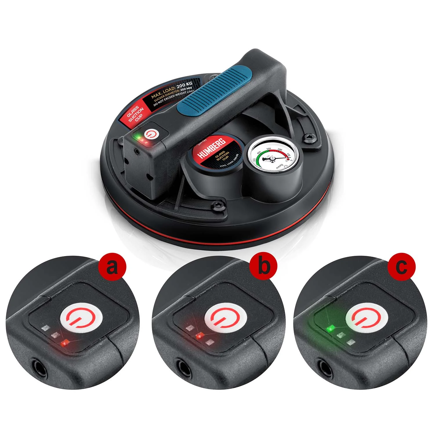 b. Wskaźnik odpowietrzania/ładowania – pokazuje zwalnianie przyssawki lub stan ładowania.
