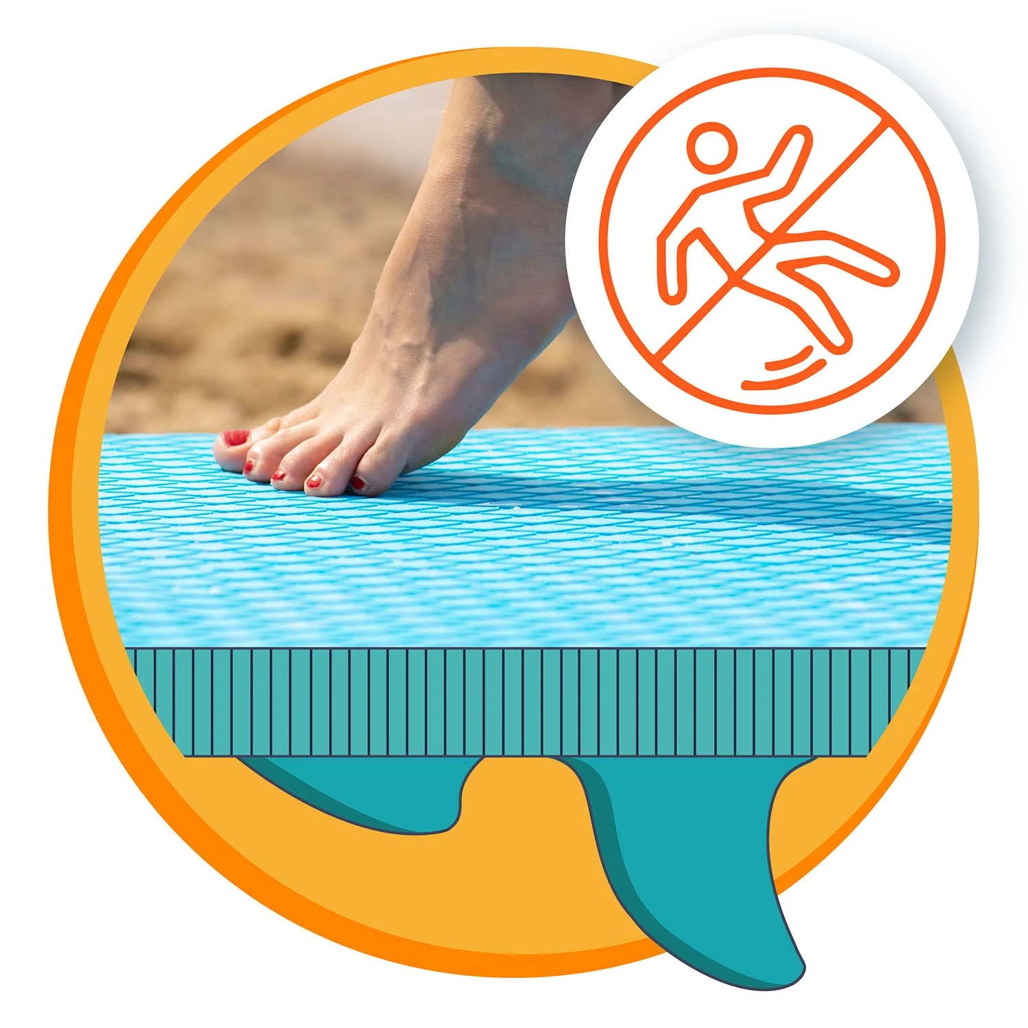 Antypoślizgowa powierzchnia zapewnia pewny chwyt nawet przy mokrych stopach, a 3 stateczniki gwarantują doskonałą kontrolę i łatwe manewrowanie. Pływaj pewnie – bez obaw o utratę równowagi.