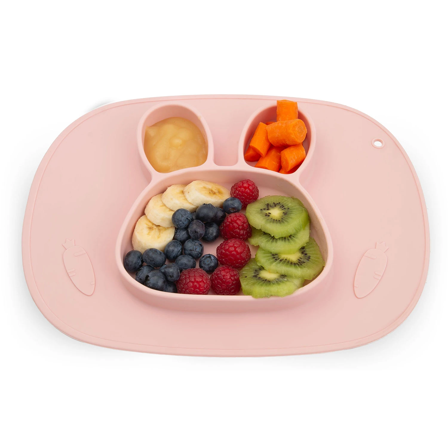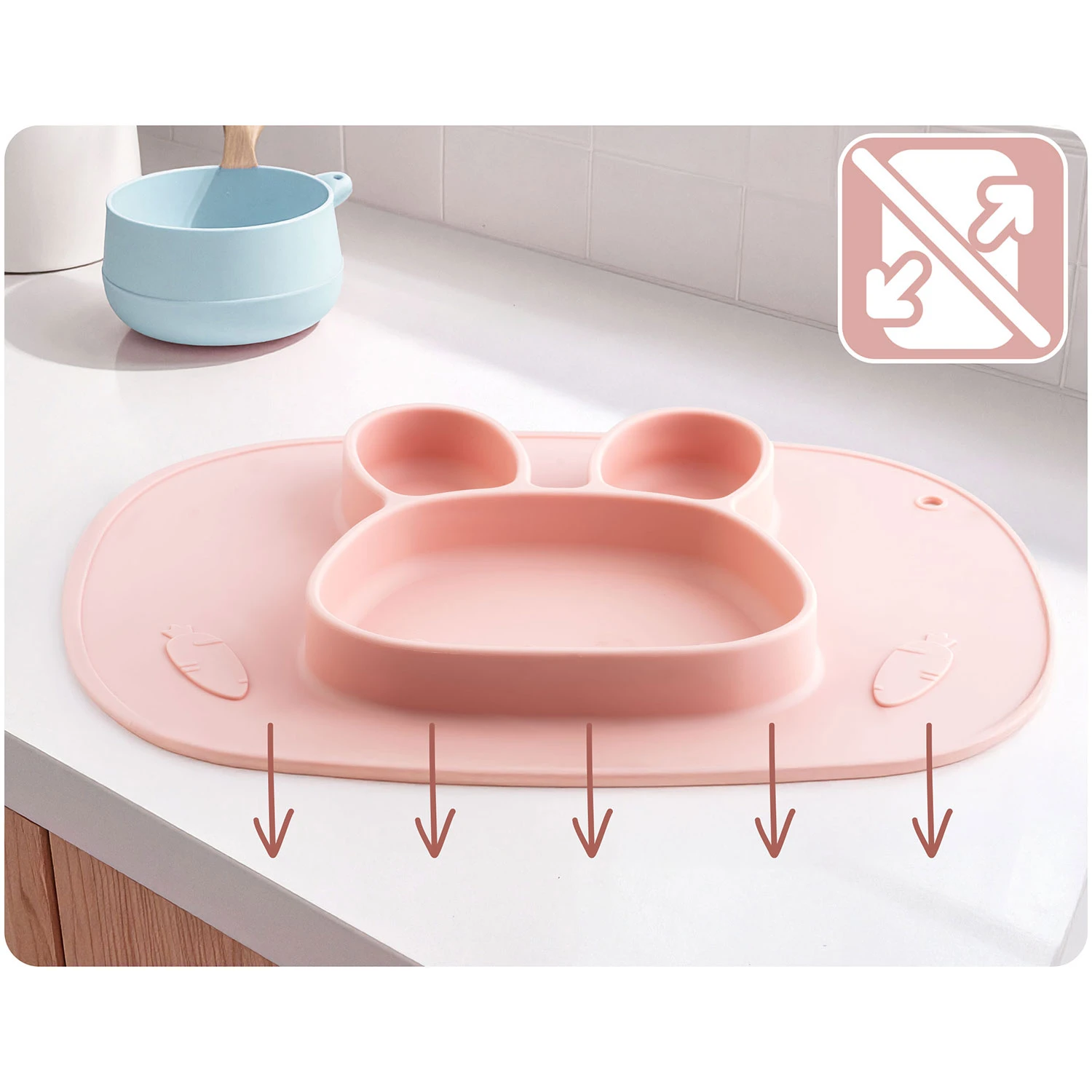 Dzięki świetnie przylegającej powierzchni talerzyk mocno trzyma się stołu – bez przesuwania i bez ryzyka wywrócenia. To mniej bałaganu, więcej spokoju i bezpieczne warunki do nauki samodzielnego jedzenia.