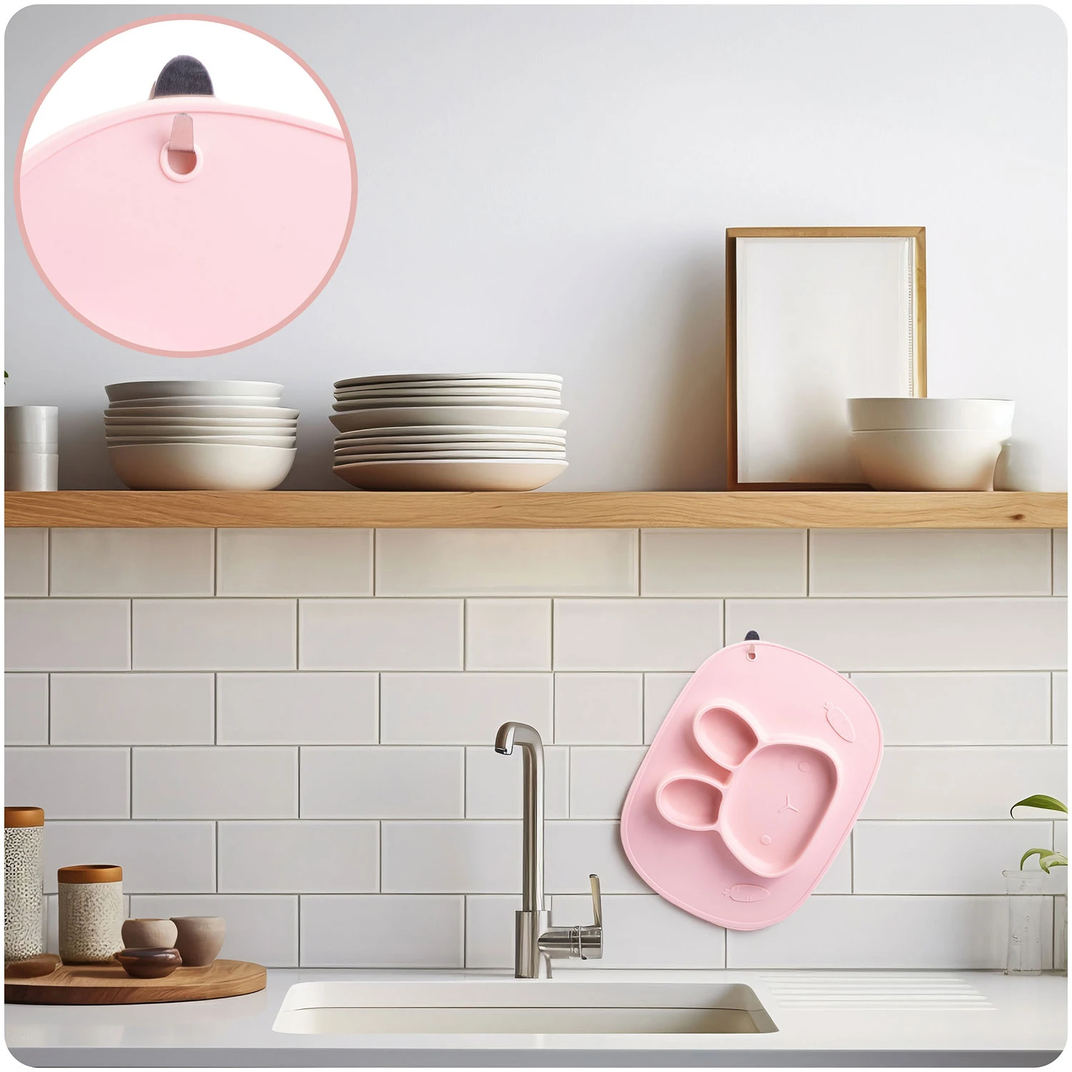 Otwór pozwala wygodnie zawiesić talerzyk po umyciu.