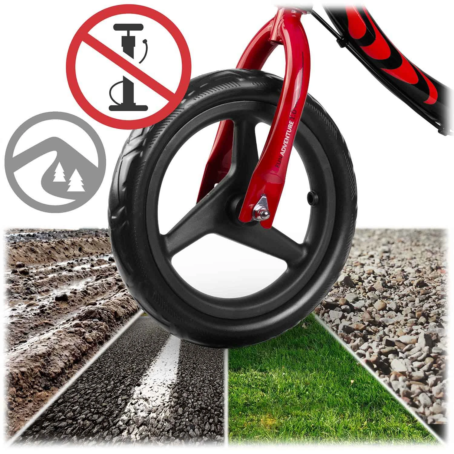 Bez względu na nawierzchnię — trawa, asfalt, piasek czy błoto — opony z pianki zapewniają bezawaryjną, stabilną i wygodną jazdę. Zero przebitych opon, zero przestojów! Pianka EVA łatwo się czyści, nie chłonie brudu i zachowuje dobry wygląd, nawet po intensywnym użytkowaniu.