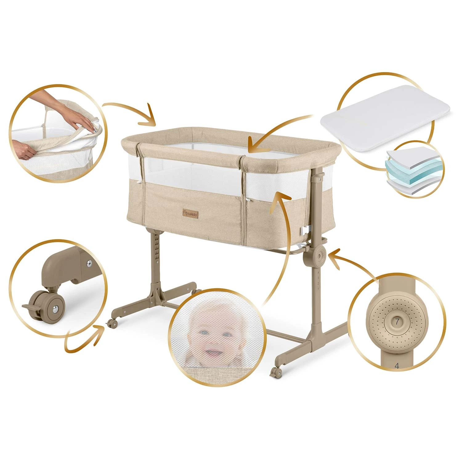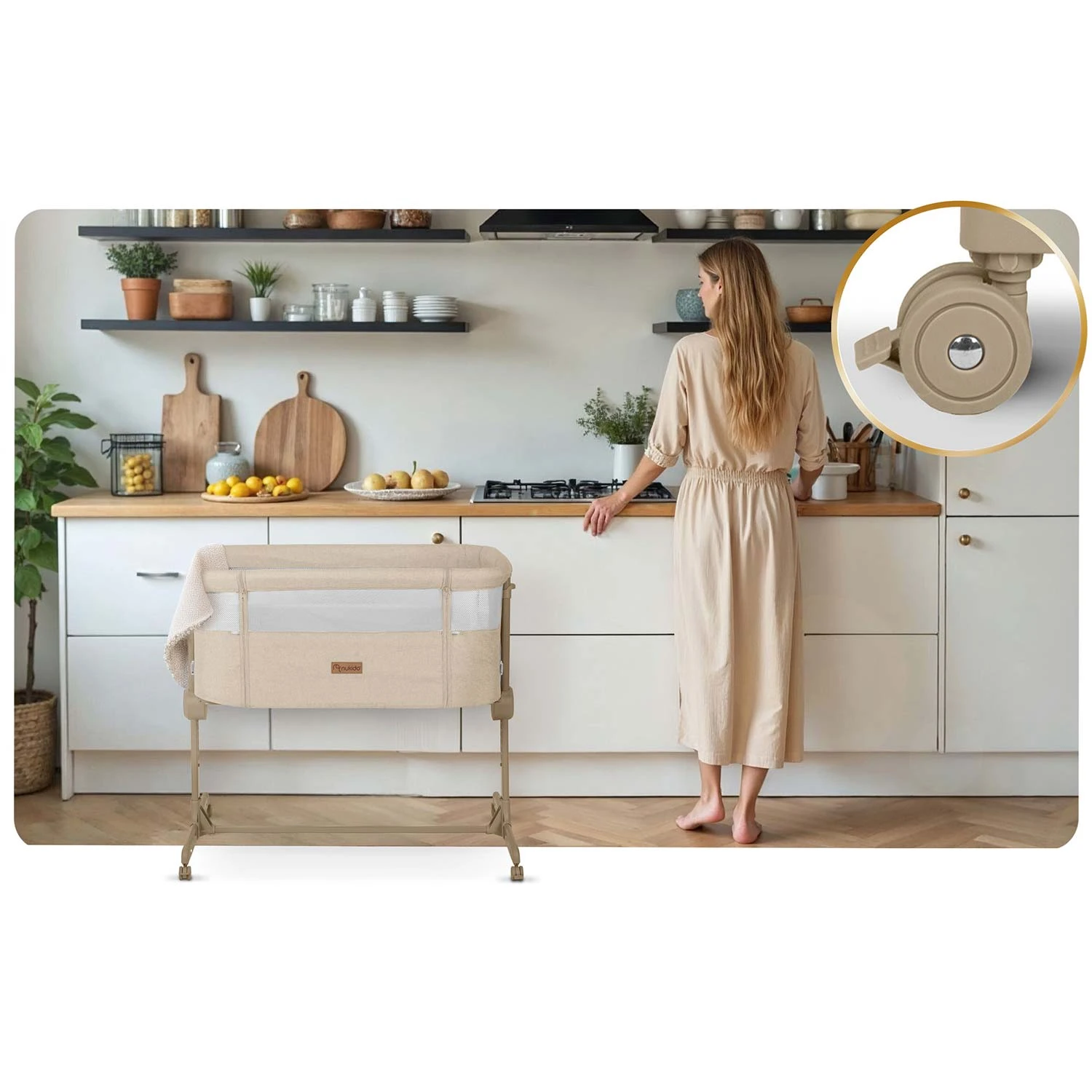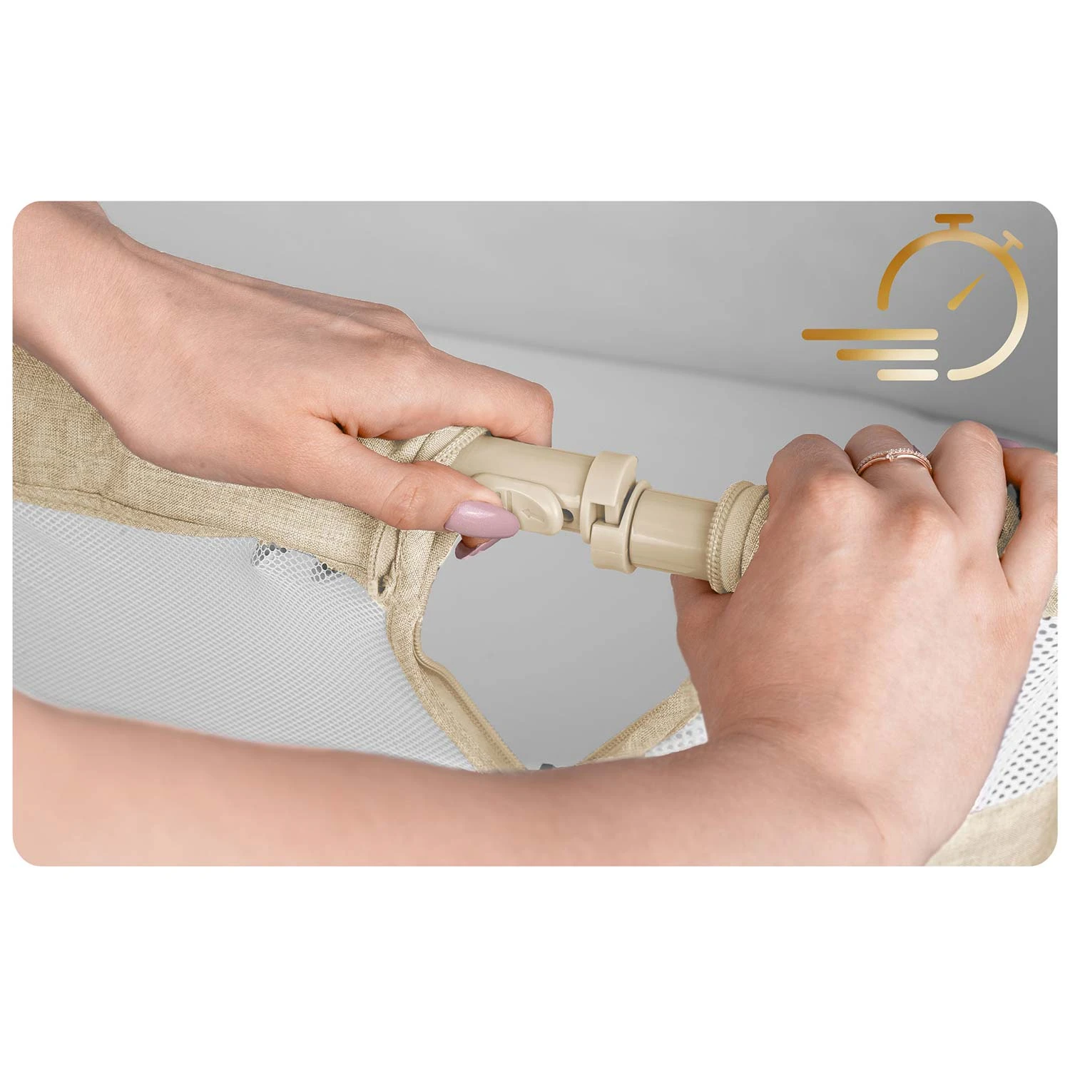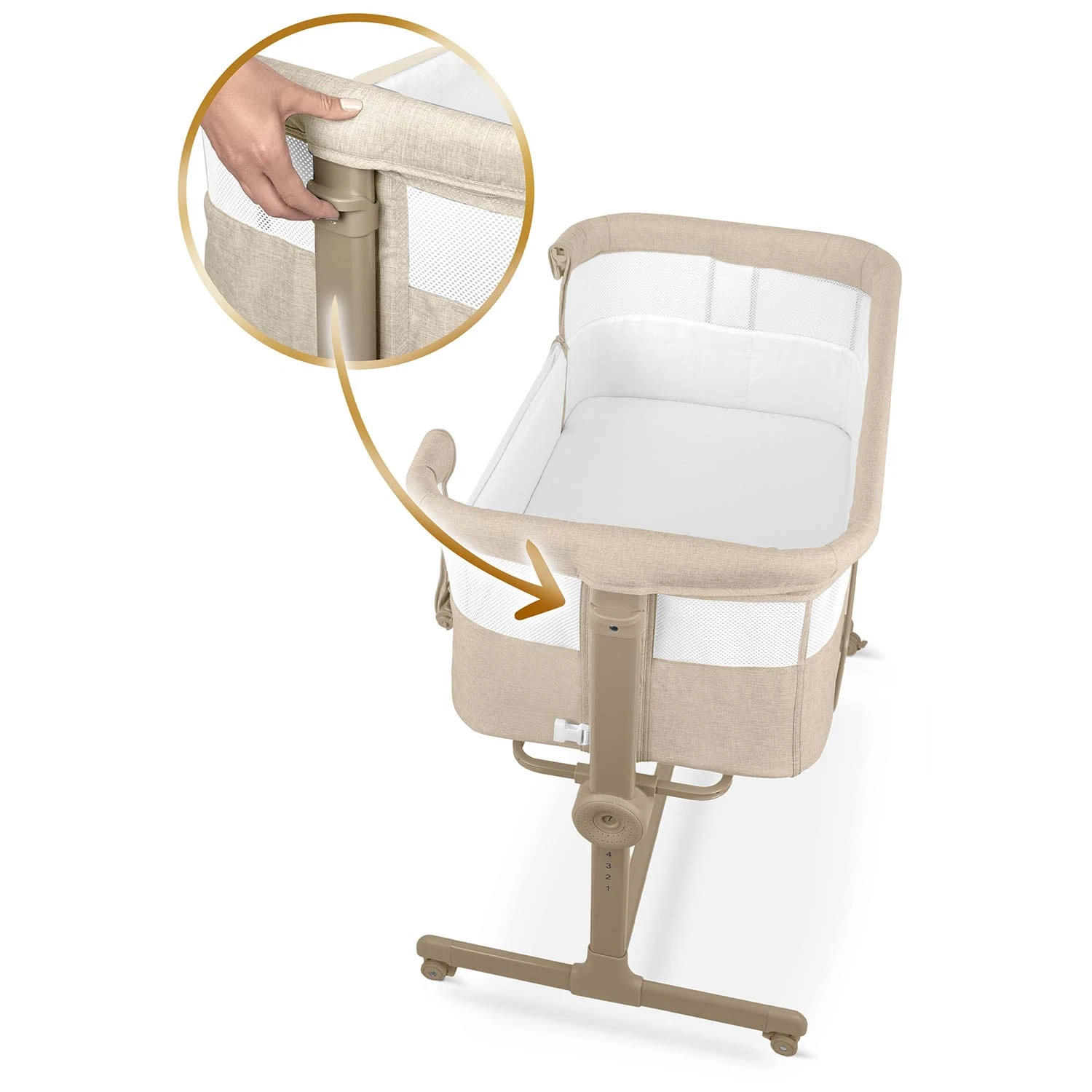 Łóżeczko dostawne umożliwia matce łatwe karmienie w nocy, bez konieczności wstawania i przechodzenia do innego pokoju. Dzięki regulacji łatwo dostosujesz wysokość łóżeczka do twojego materaca.